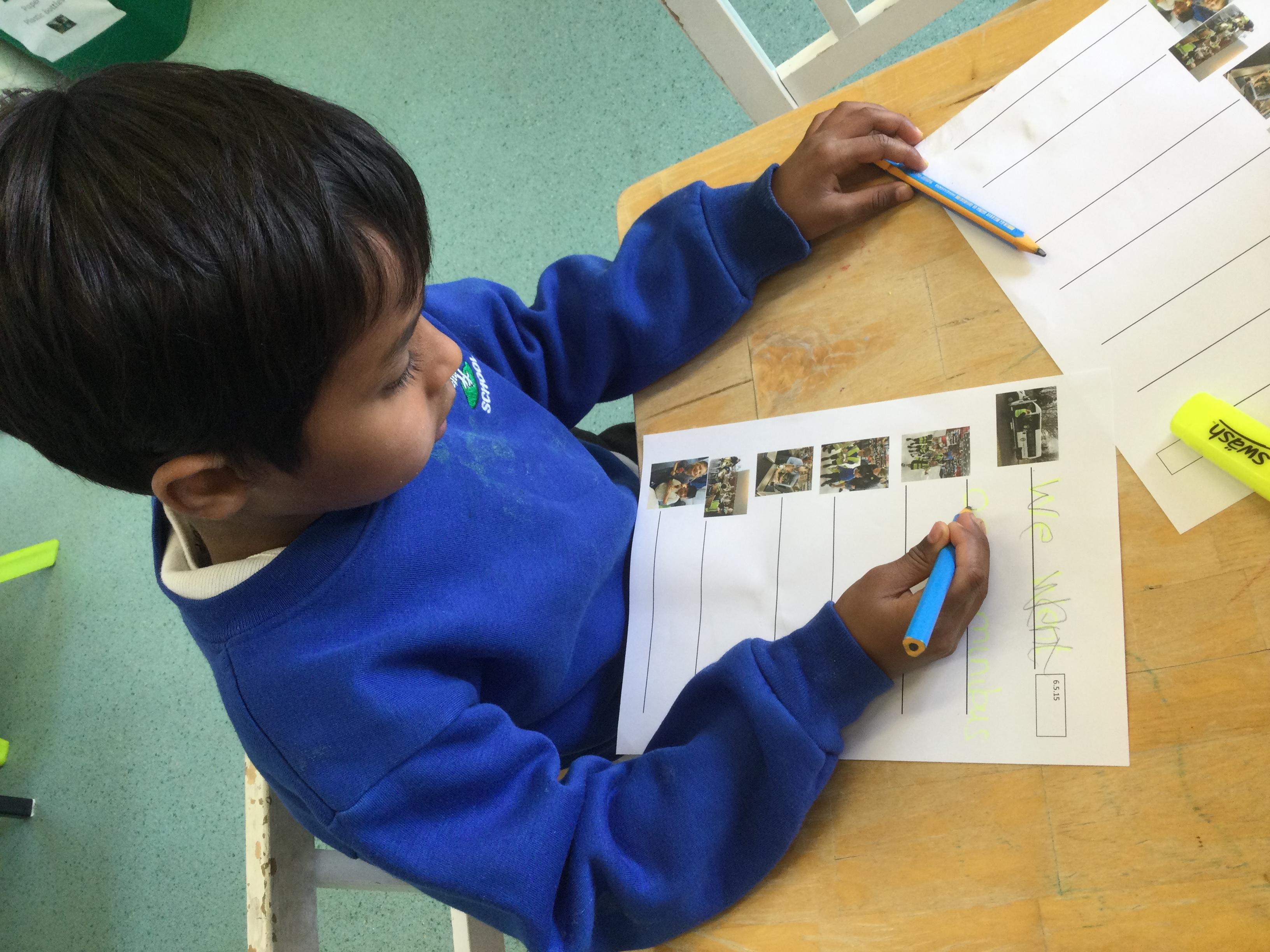 We have been taking part in some whole class writing on the tables to help prepare us for some of the activities we might do in Year 1. This week we wrote about our beach day on Monday. The children worked hard to remember capital letters, full stops and finger spaces.