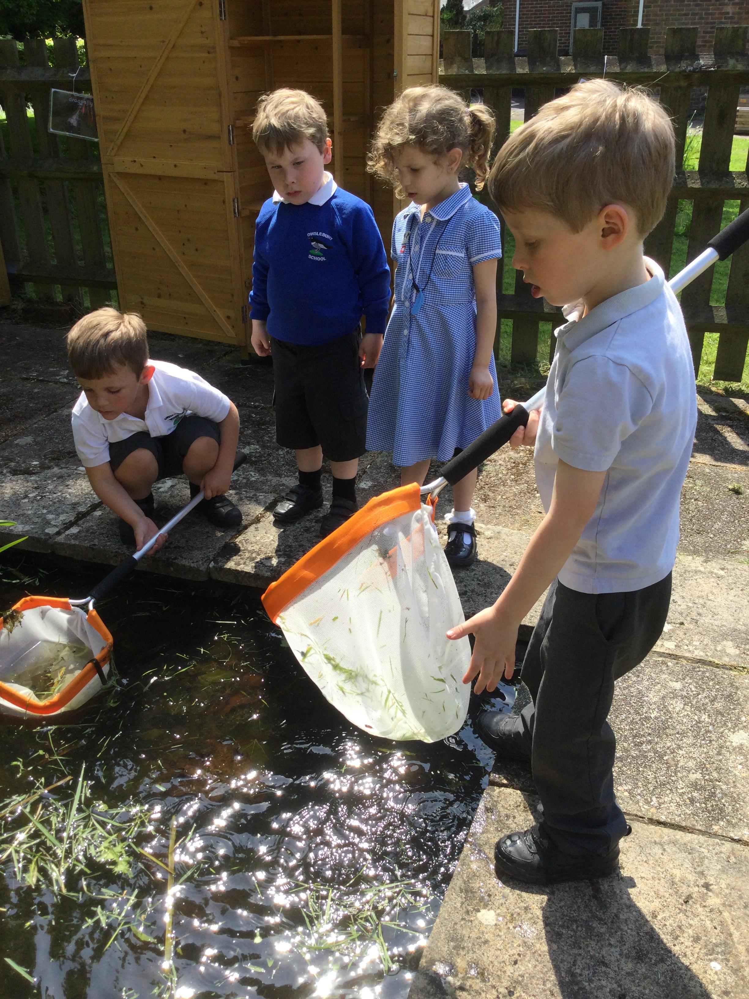 On Thursday, Mrs Chaplen took us to the school pond. We enjoyed using the nets and taking a closer look at the real life tadpoles who were beginning to turn into froglets. We loved sharing what we found and demonstrated excellent listening and turn taking skills.