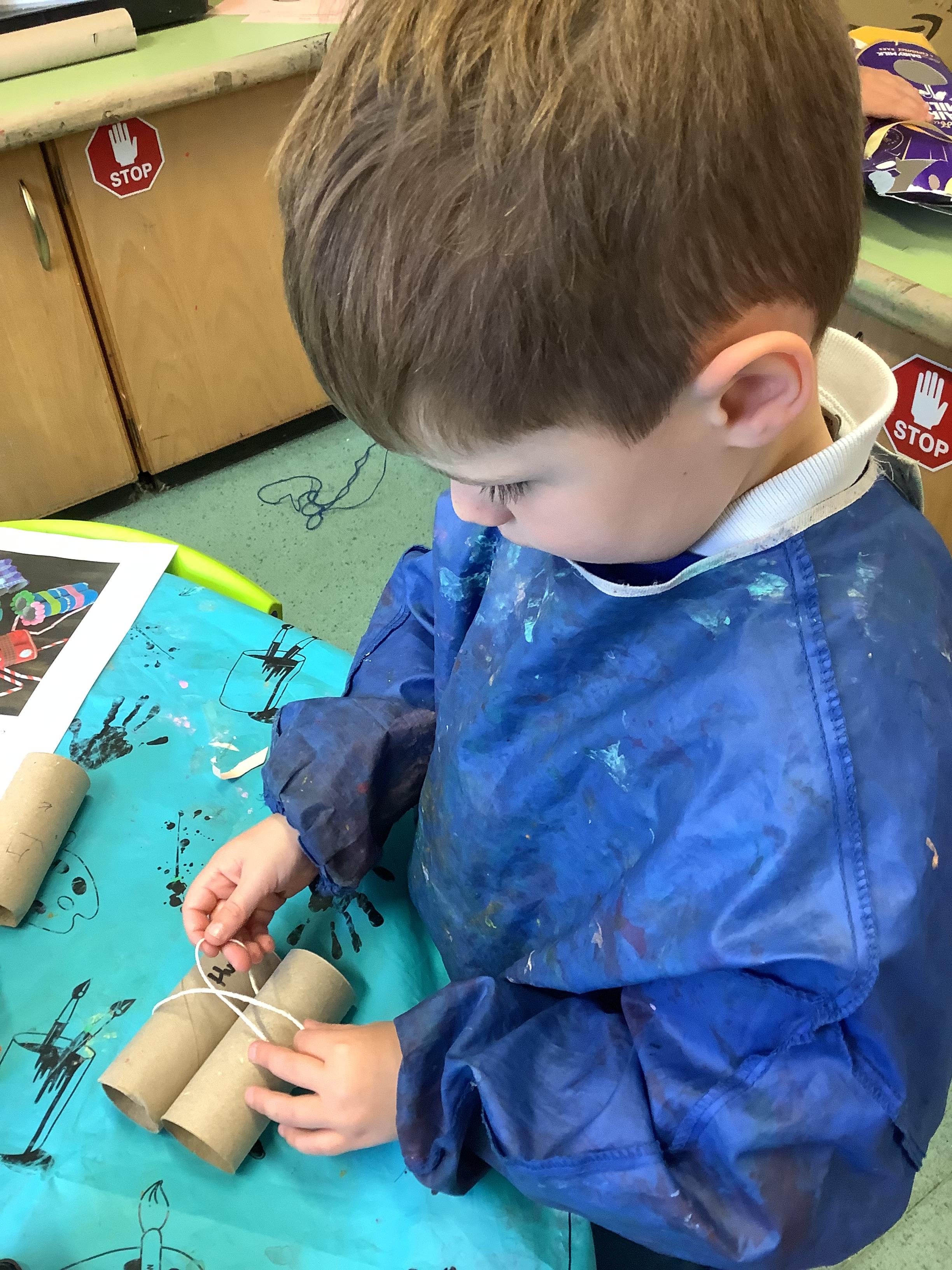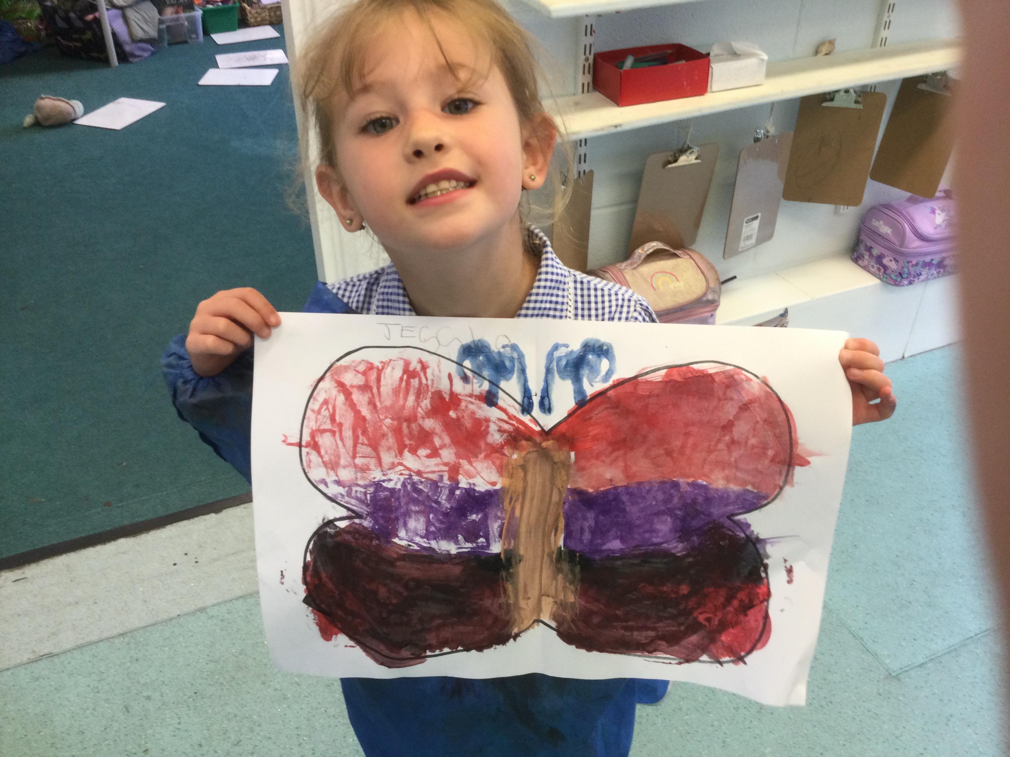 In the art area we made symmetrical butterflies using printing and paint exploring colour mixing at the same time.