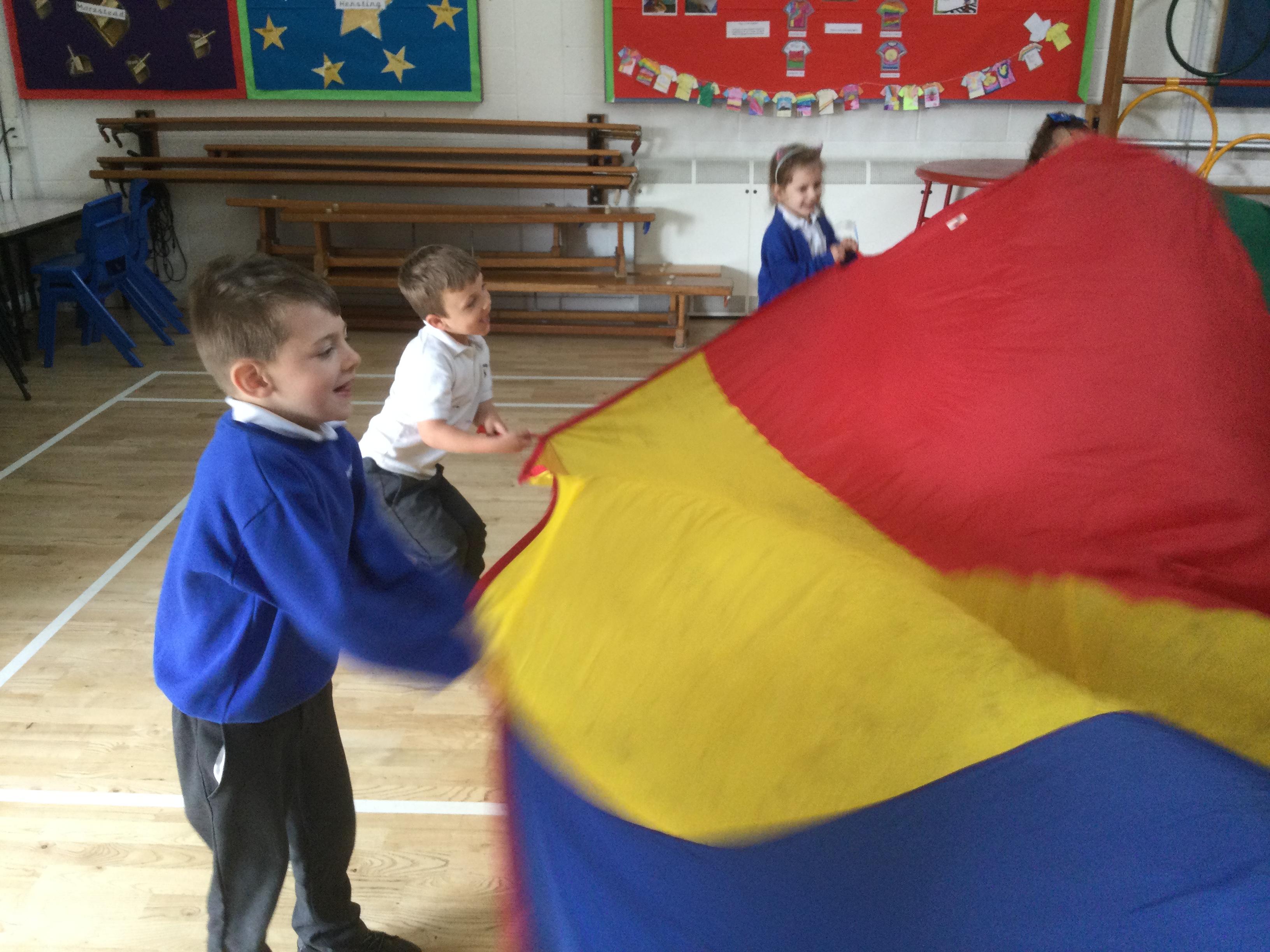 In maths sessions we have been comparing and naming 3D shapes as well as forming pictures using them. We played a game where we described shapes and another child had to guess what it was. We have also explored the concept of sharing into groups- we loved sharing out the items for a tea party between Woofy and Angel.