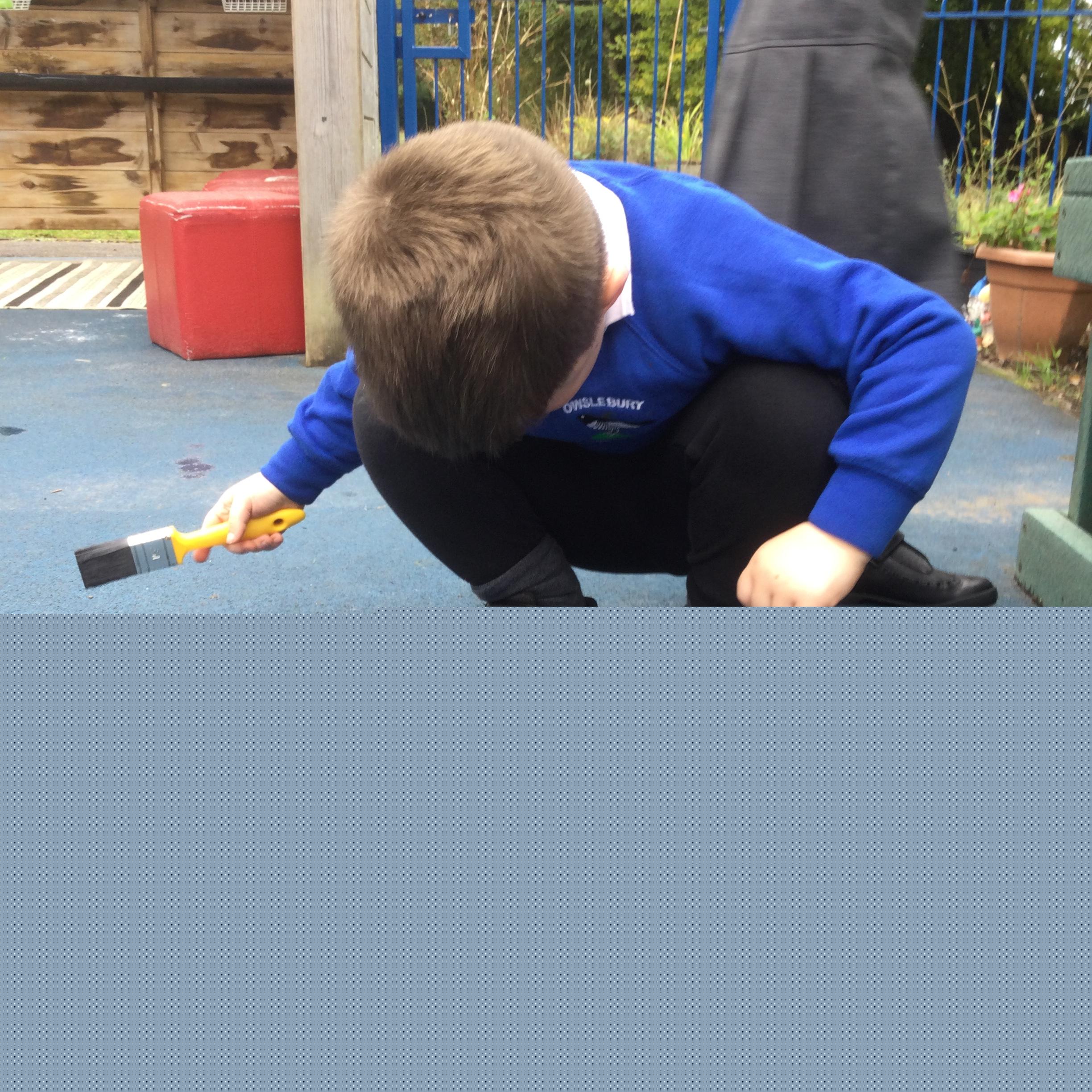 Outside, we have been building our muscles ready for writing by throwing bean bags into targets, exploring how to move boats down a tube using water and playing ball games.