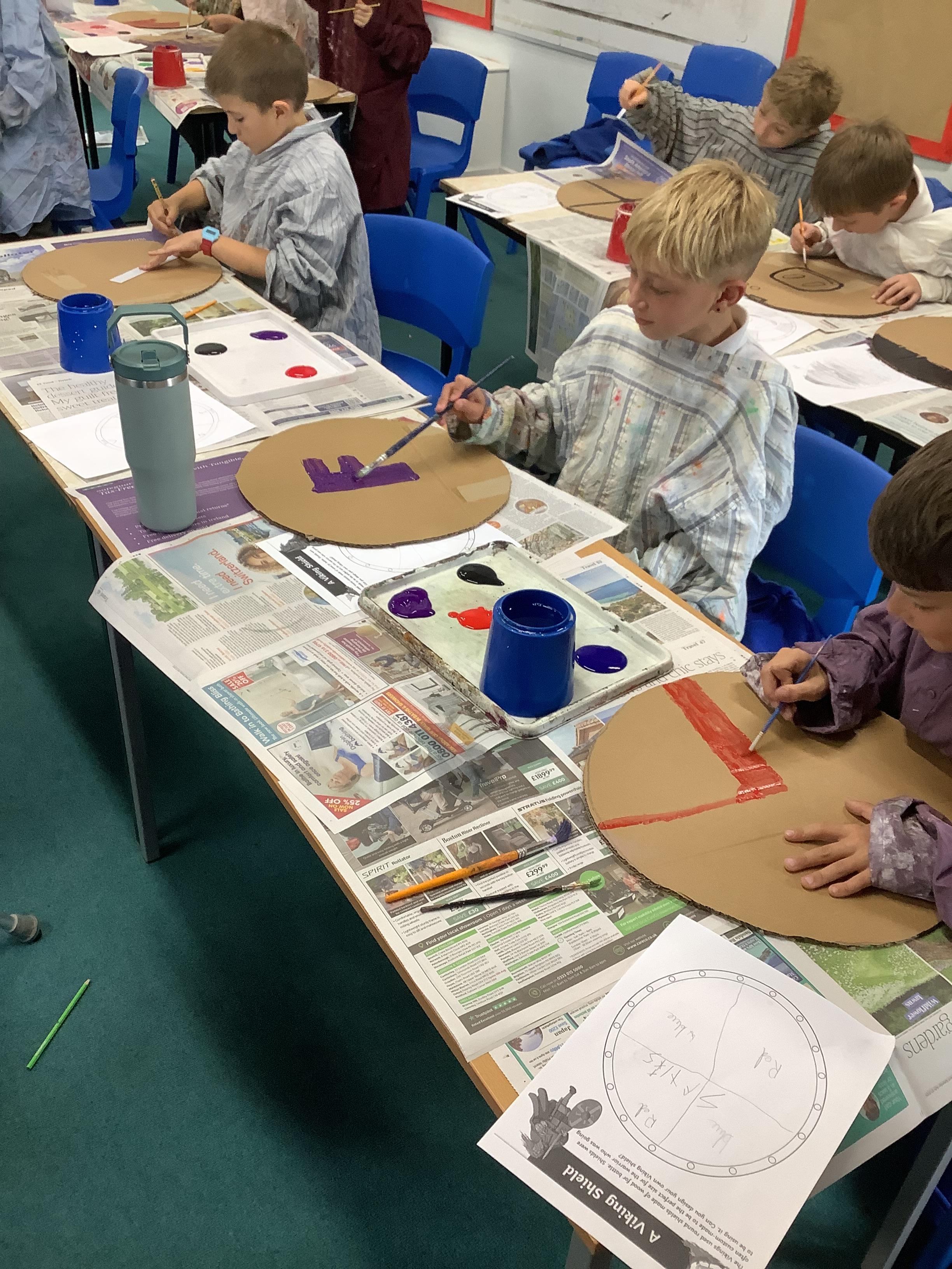 After break, the focus shifted to Viking weaponry. The children researched different types of weapons and created a fact file on their favourite. The afternoon was filled with creativity as they designed and painted their very own Viking shields, bringing together everything they had learnt throughout the day.