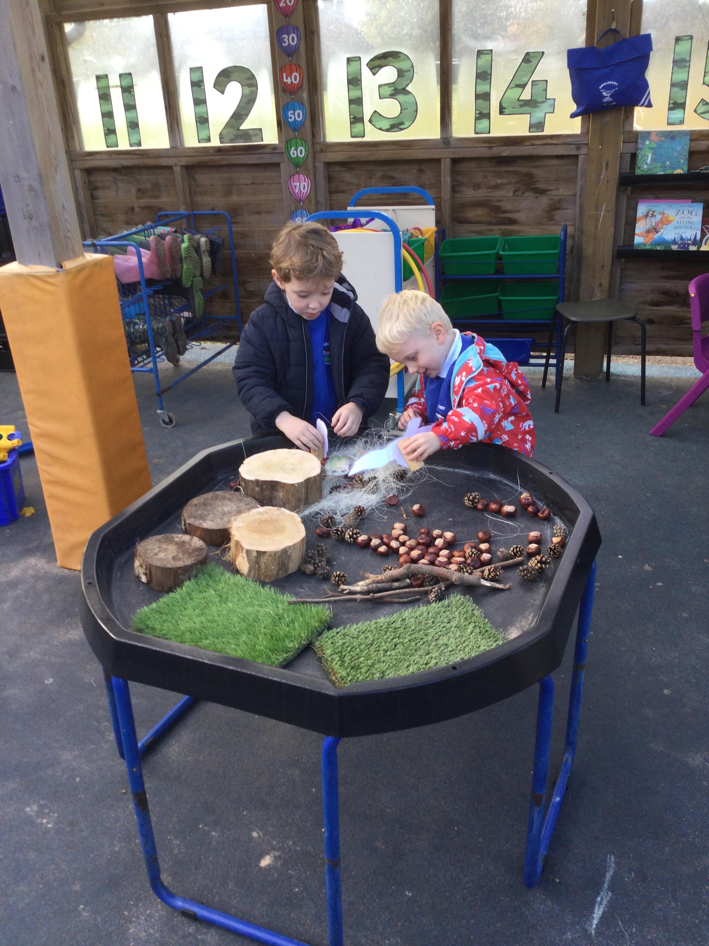 Over the last couple of weeks the children have enjoyed our themes around the Gingerbread Man and Owl Babies. Children have had fun making Gingerbread, retelling the stories with puppets and music and also acting out the stories outside. Children continue to enjoy mark-making and are having lots of fun with the chalks and as well as small whiteboards. Children have experimented with colour-mixing in the art area and have had lots of fun using their imaginations building and making. Well done Marwell Class!