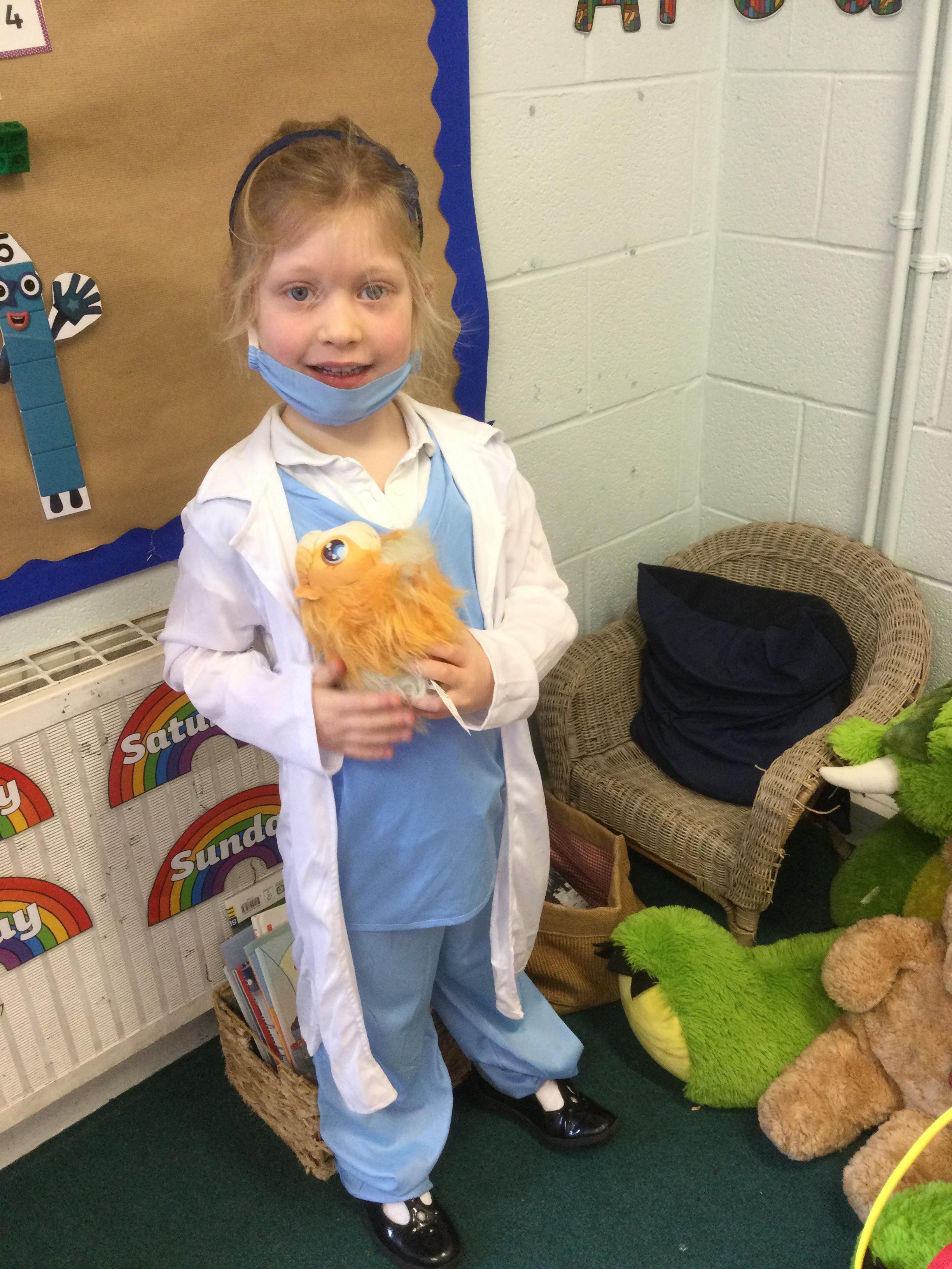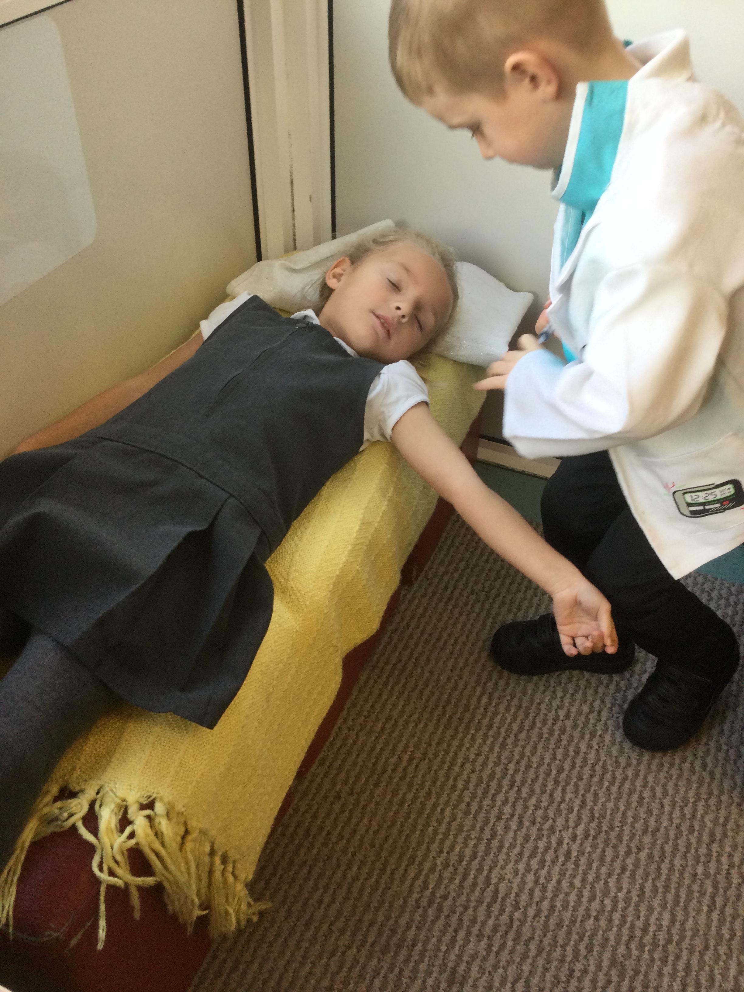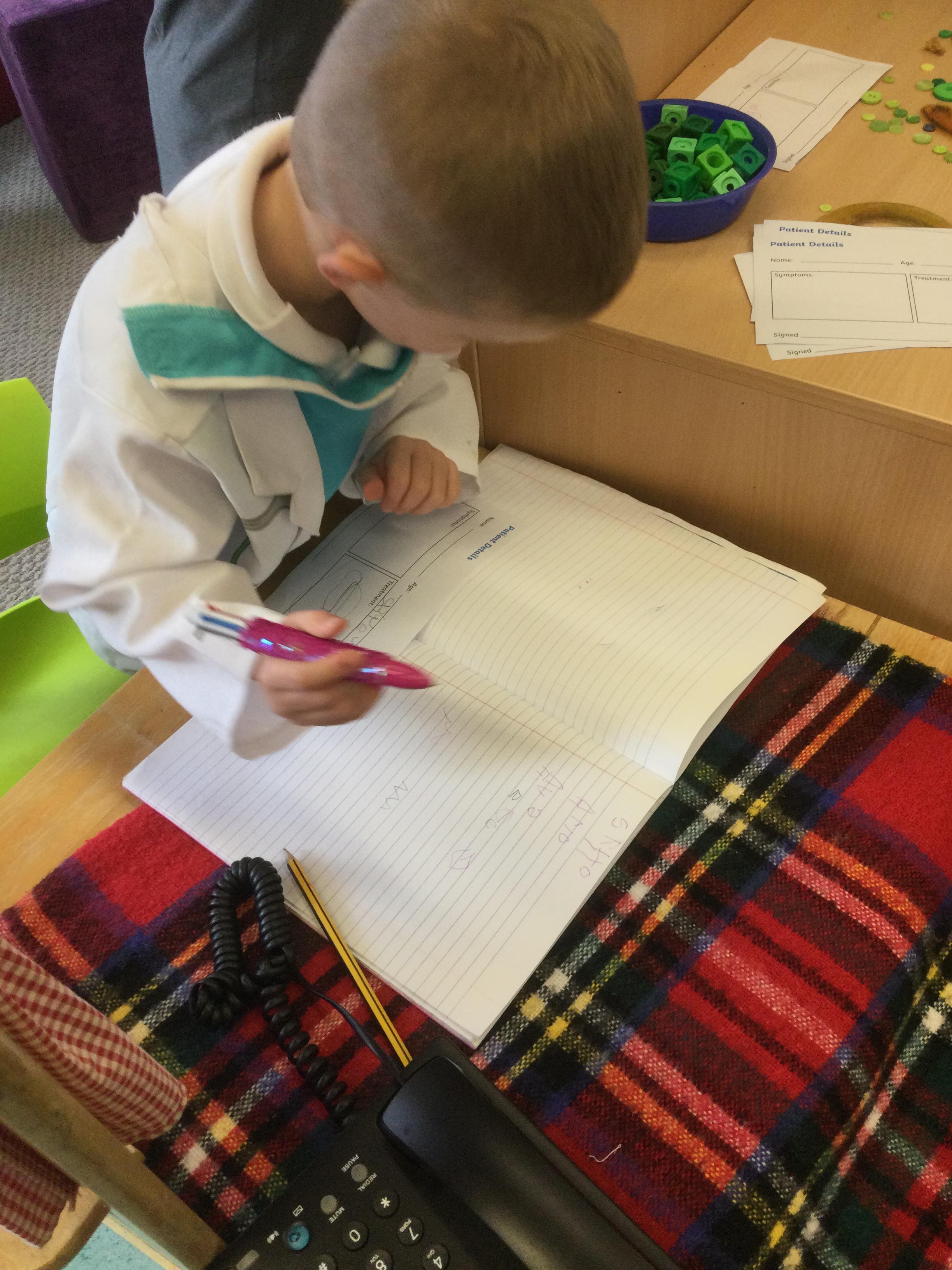 Then we were able to try out our new role play area the doctors surgery. Mr Flynn even took on the role of a patient and we took it in turns to be doctors and nurses.