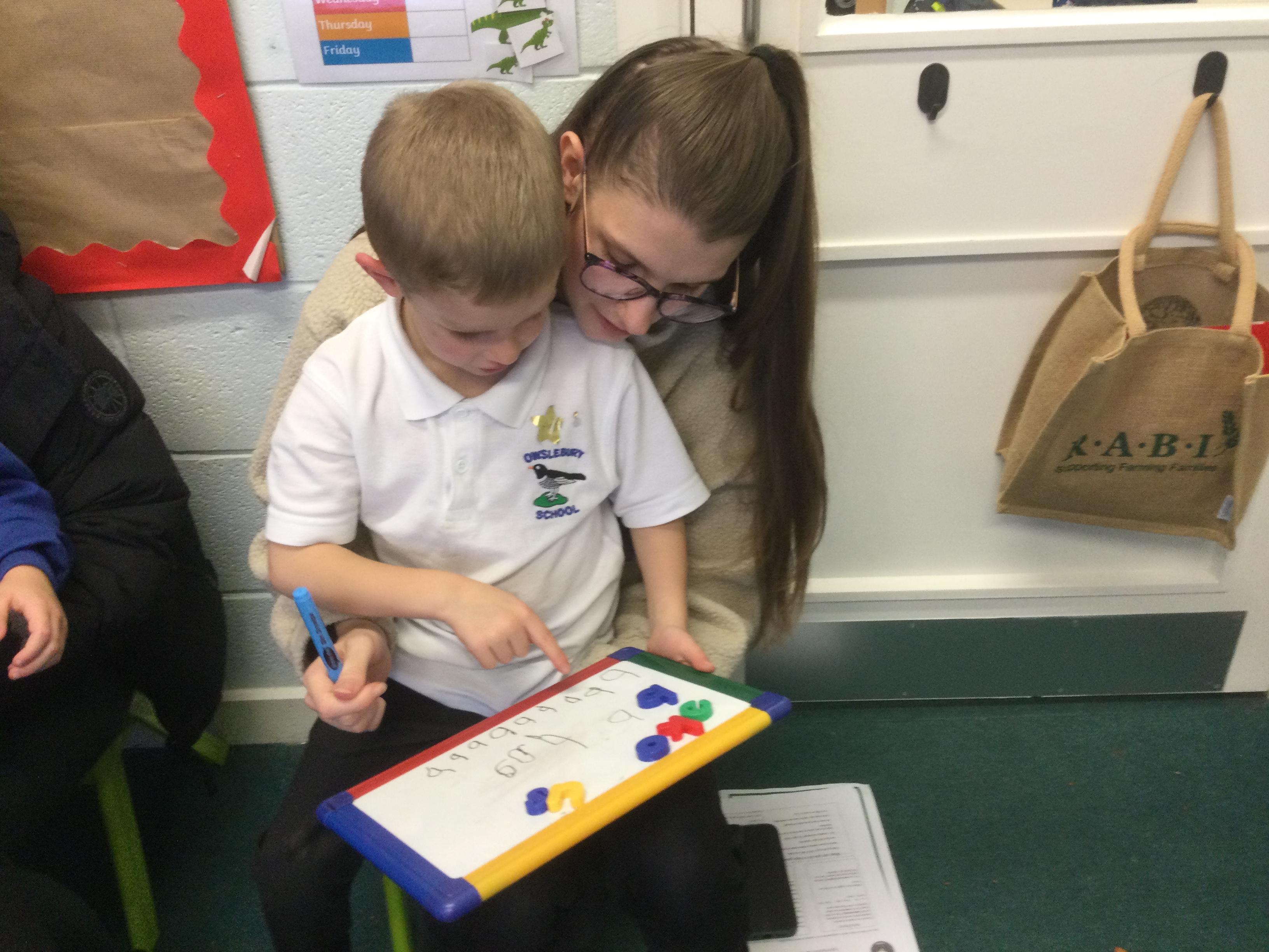 ‘That completes all the phase 2 sounds (the first set of letters in phonics) the children have been doing brilliantly with their recognition of these and we are really pleased with their progress in blending sounds together to read words.