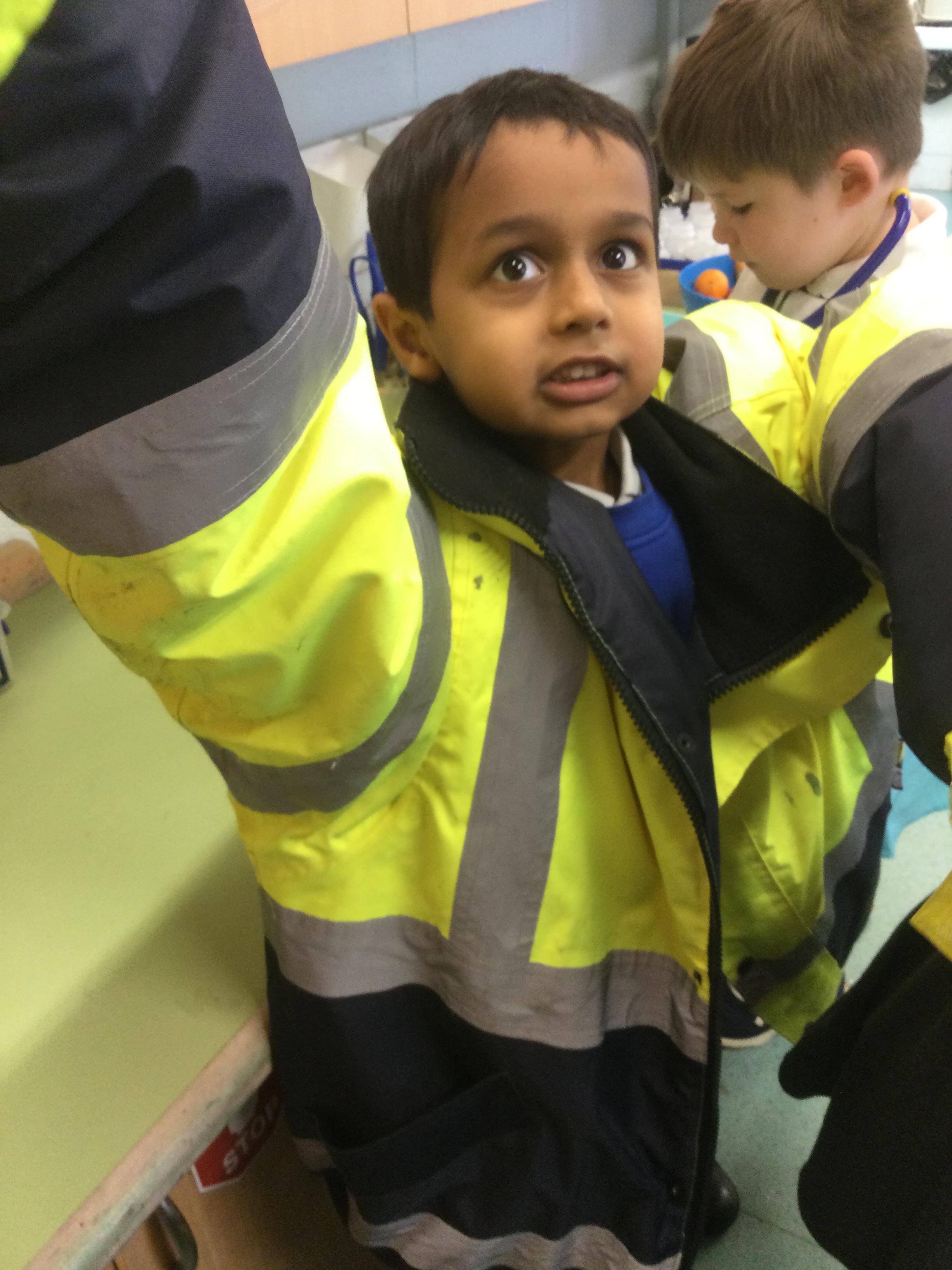 He spoke to us about the jobs he does to look after our school and make sure it is a safe place for us to learn and play. He showed us the clothes he wears including a hi vis jacket and hard boots. He also told us about how he unblocked our sink after it had too much sand in it!