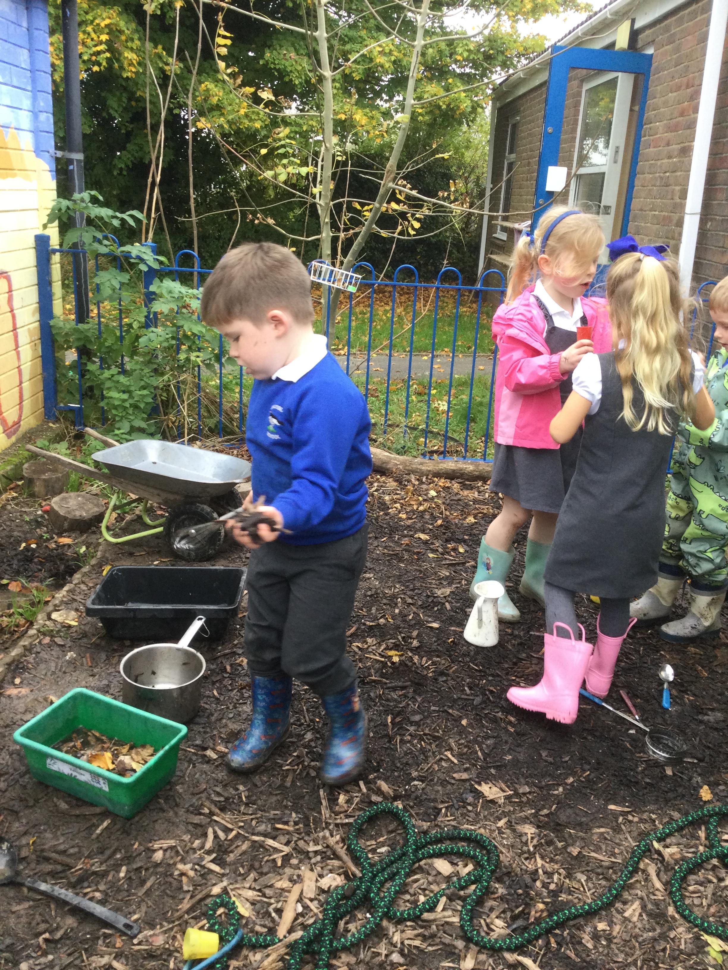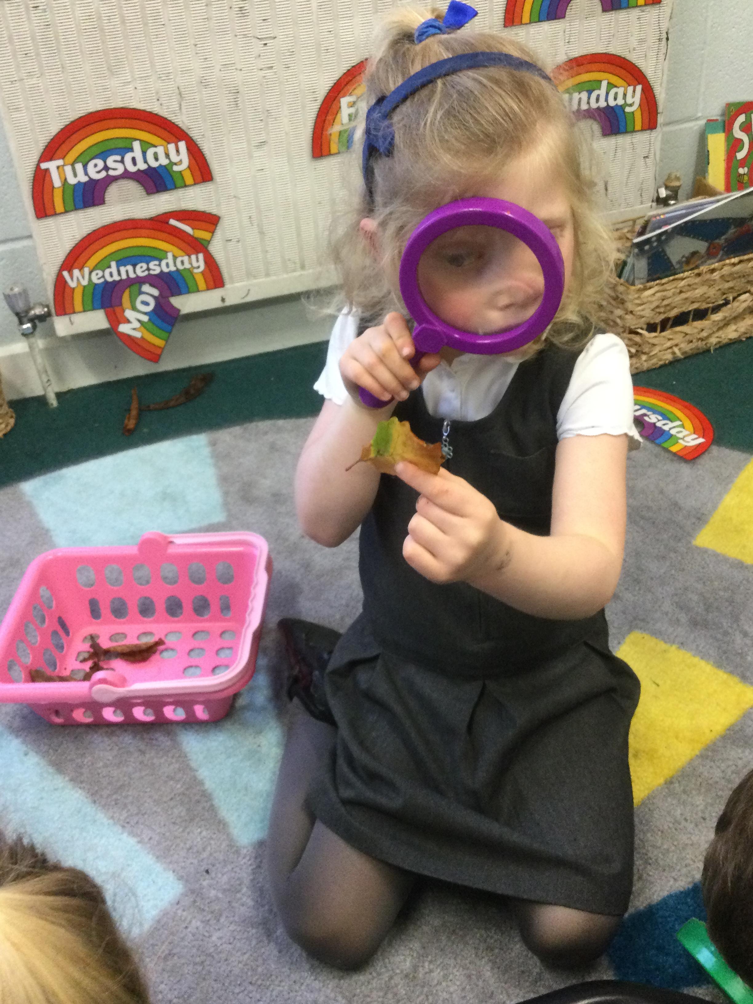 For science, we did some season exploration and looked at the different colours we find in autumn. We used our best investigating skills and noticed that some leaves even had many different colours all in one!