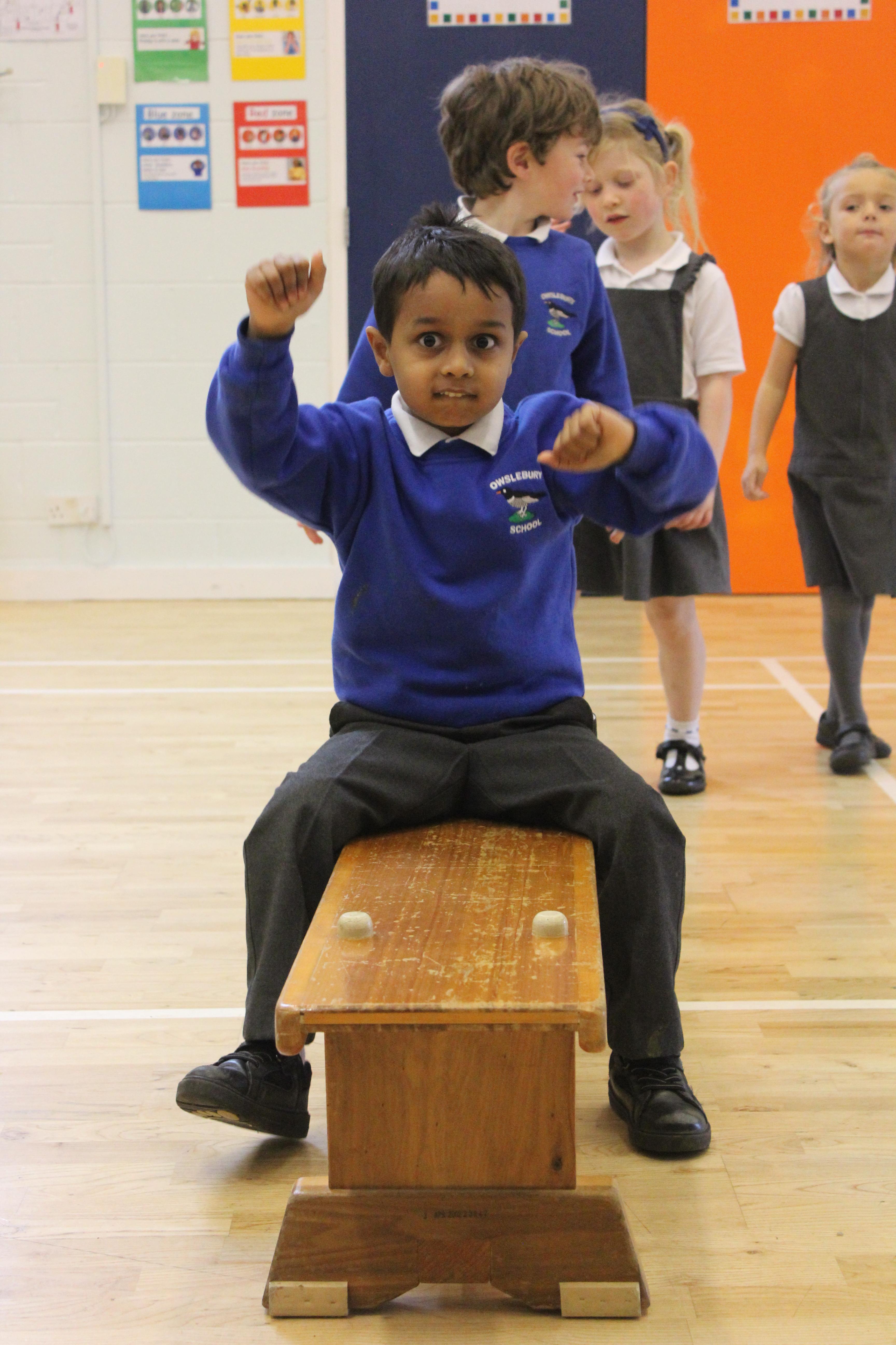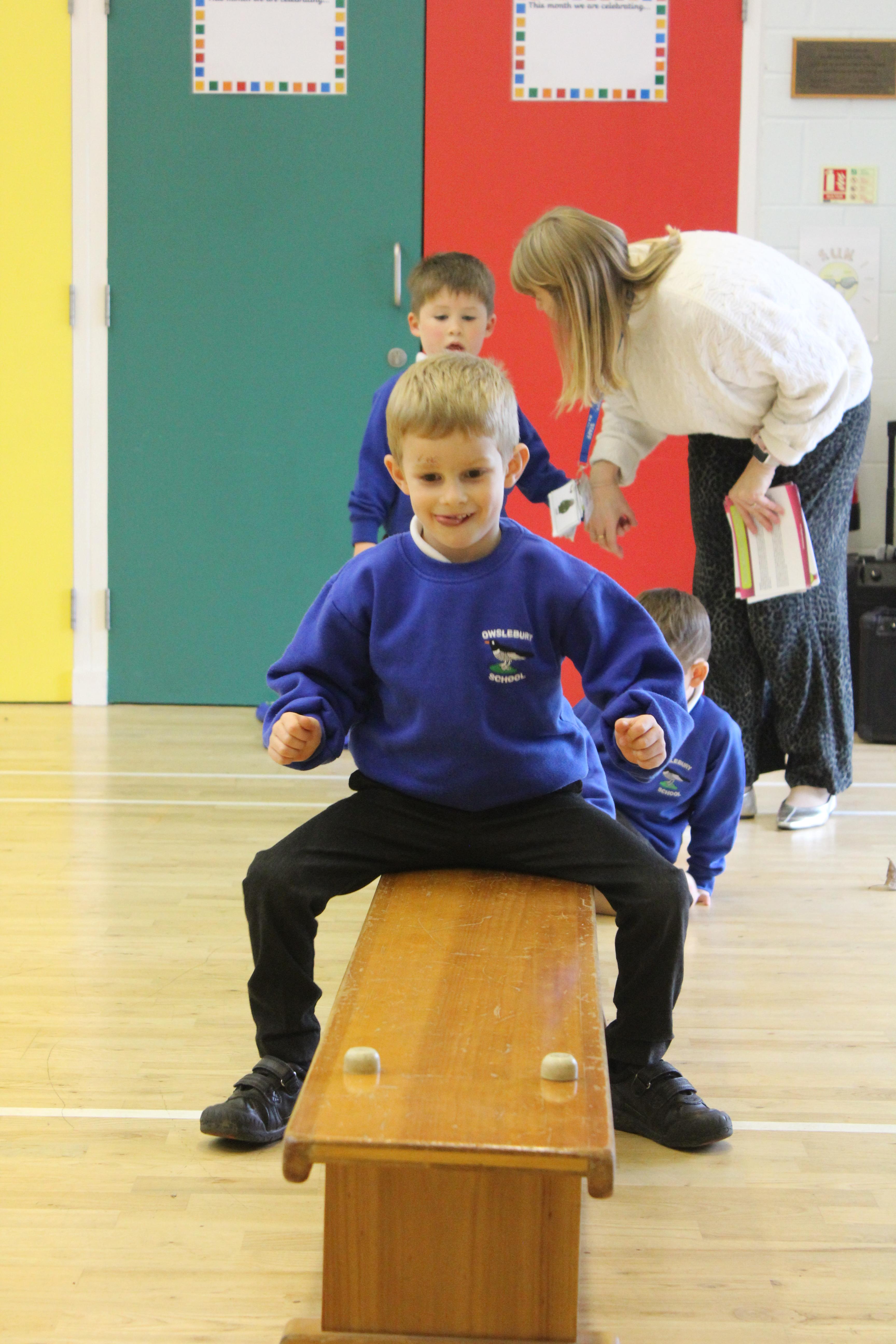 This week we played a game called bench shuffle where the children had to shuffle forwards moving one foot at a time along a bench without using their hands. We were very impressed with their determination!