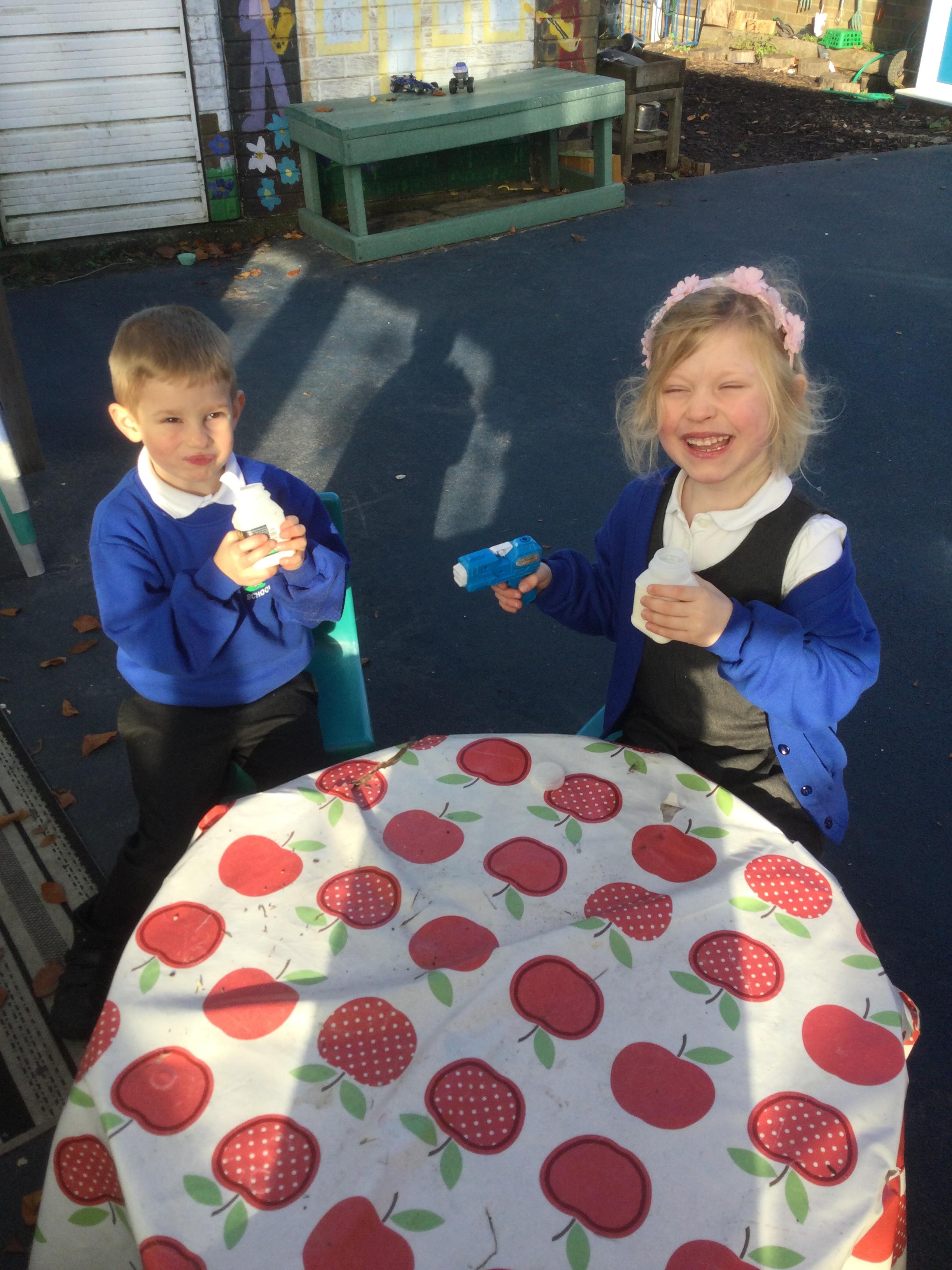 We then helped him test the temperature of the water in our art area which he has to do regularly to check it is safe for us to use.