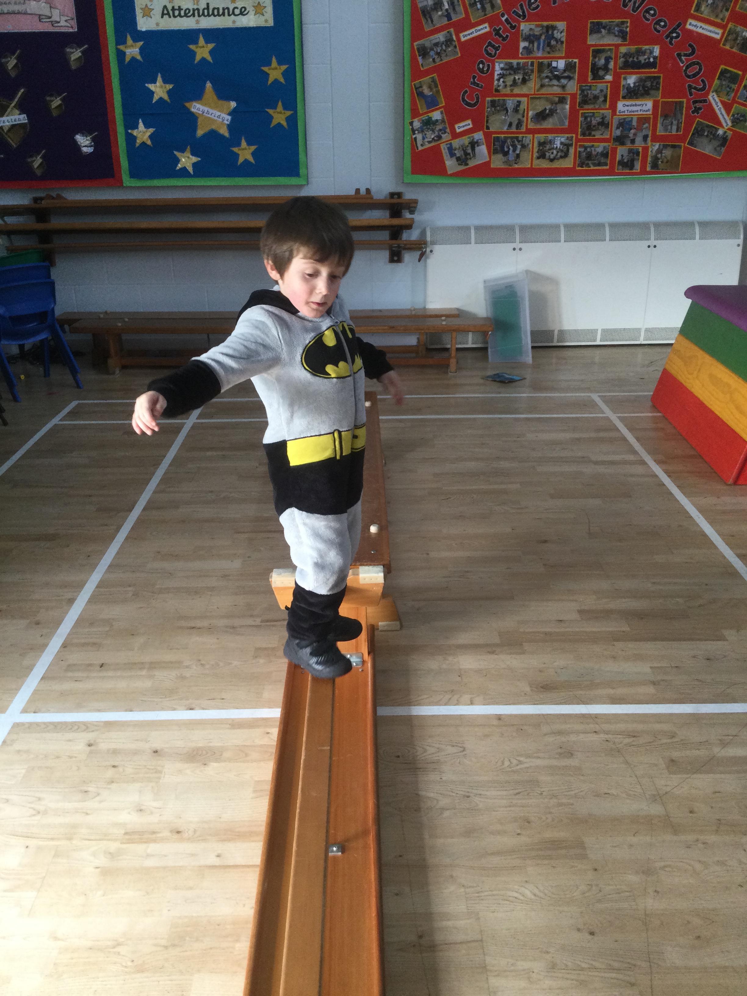 This week we played a game called bench shuffle where the children had to shuffle forwards moving one foot at a time along a bench without using their hands. We were very impressed with their determination!