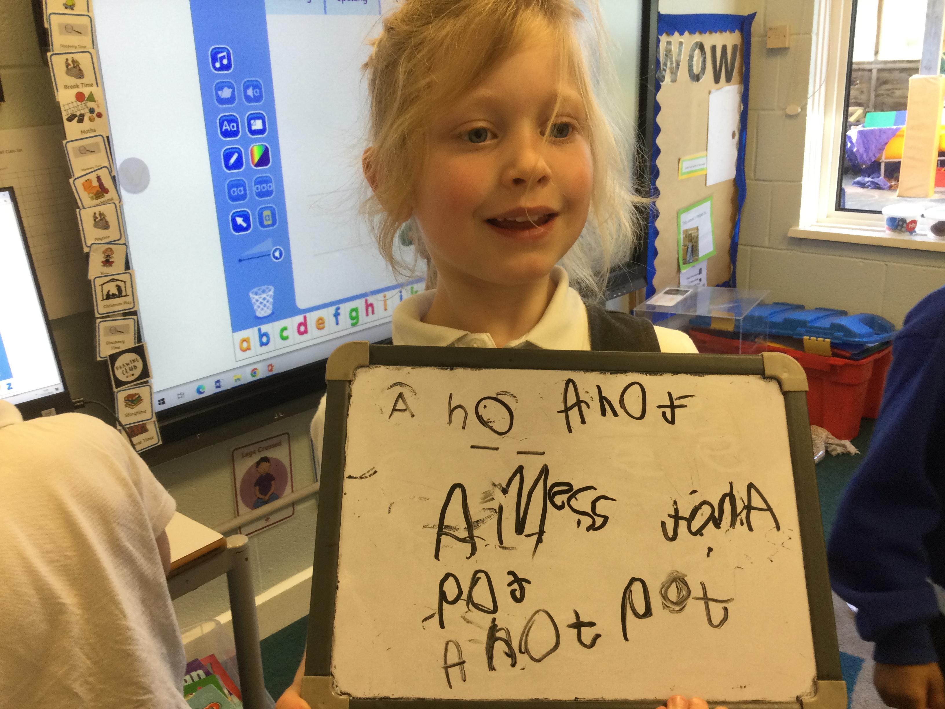 In phonics this week we learnt the final graphemes ‘l’ ‘ll’ and ‘ss’. We also started to learn the tricky words ‘I’ ‘into’ and ‘her’. We have been writing simple captions such as ‘a hot pot’ or ‘a mess’ using the graphemes we have learnt.