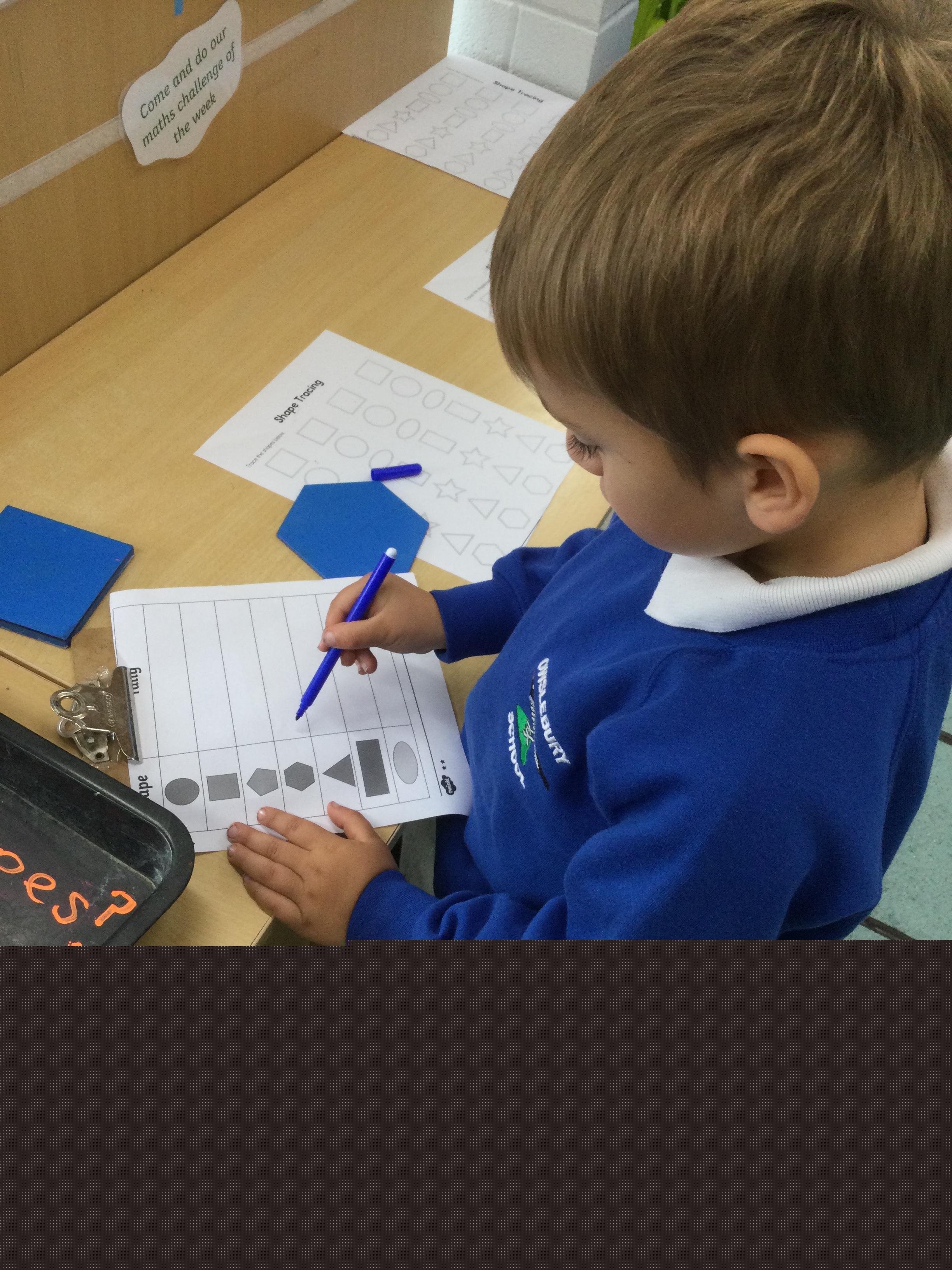 In maths we have been naming and discussing the properties of 2D shapes. We played guess the shape, went on a shape hunt and compared differences between them.