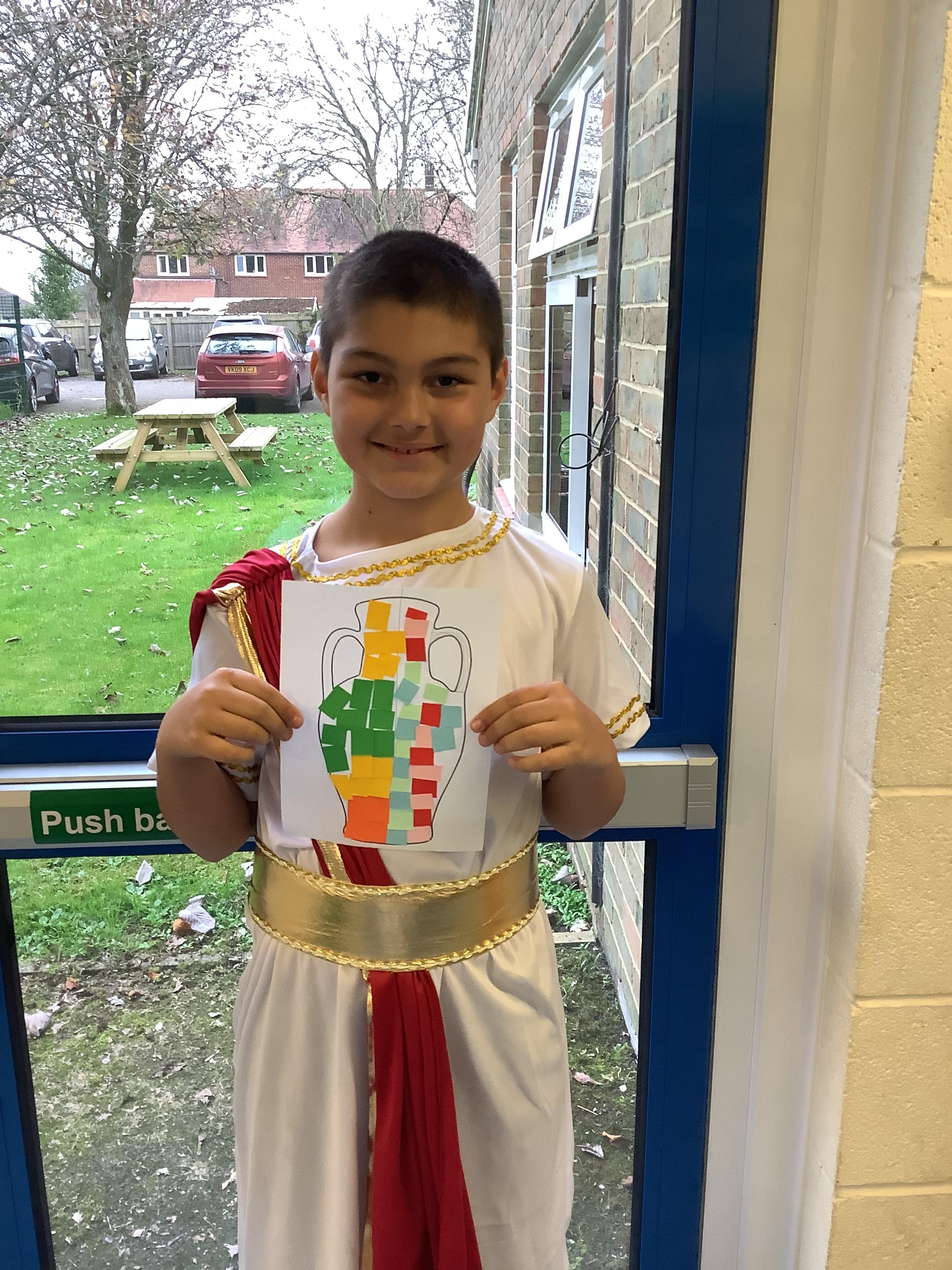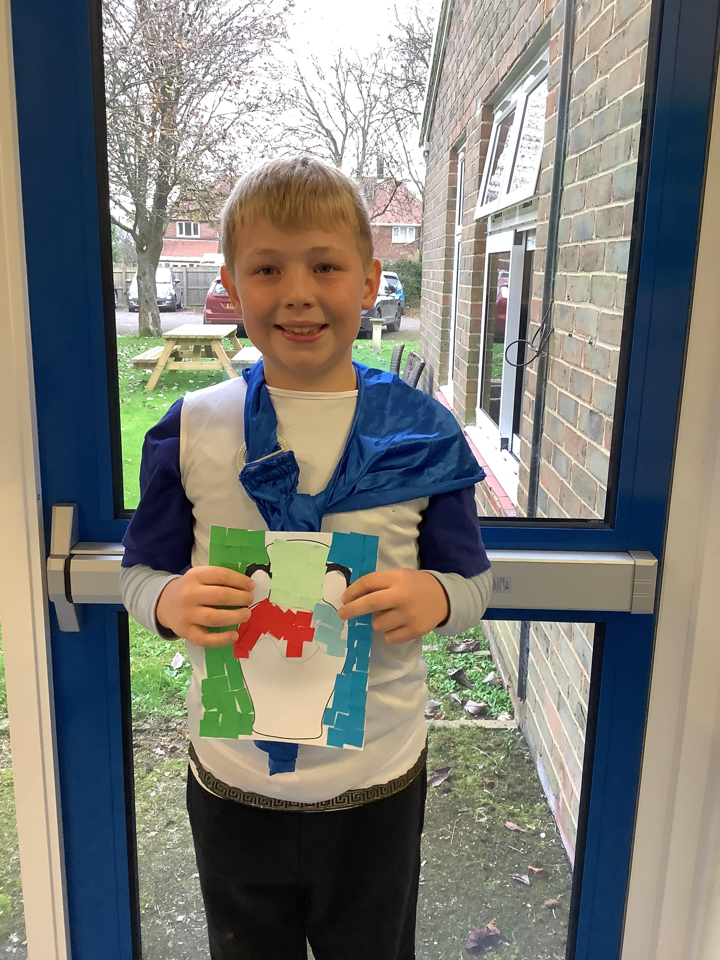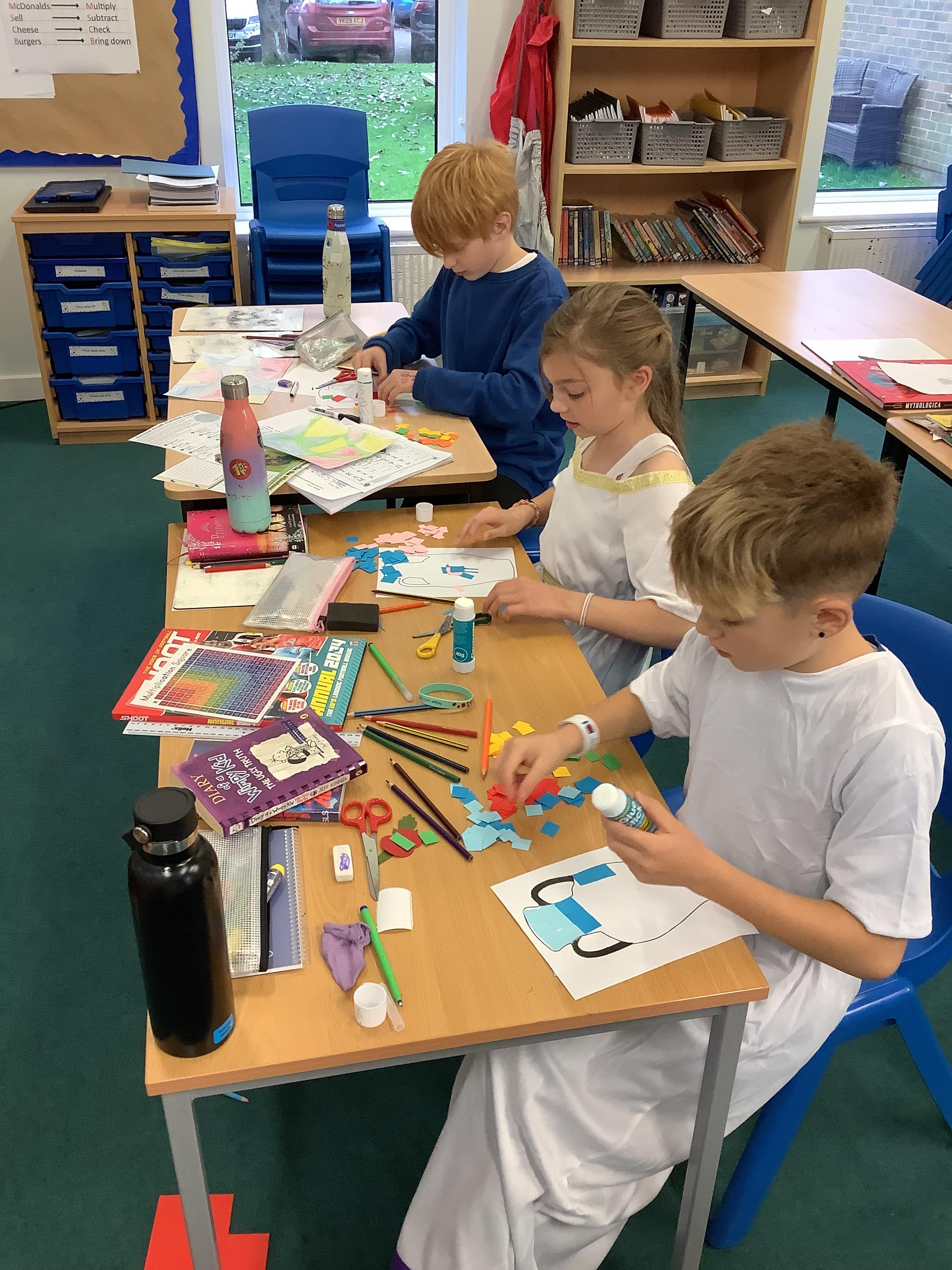 The children had a fantastic time on their Ancient Greek Hook day! In the morning, they worked on maths, focusing on coordinates while 'finding Greek artifacts' hidden around the classroom. Then, in writing, they explored the myth of Theseus and the Minotaur, and each child wrote a diary entry from the perspective of Theseus. In the afternoon, the fun continued with some creative mosaic artwork and a mini Olympics, where the children got to compete in some traditional Greek-style games. A day full of learning and excitement!