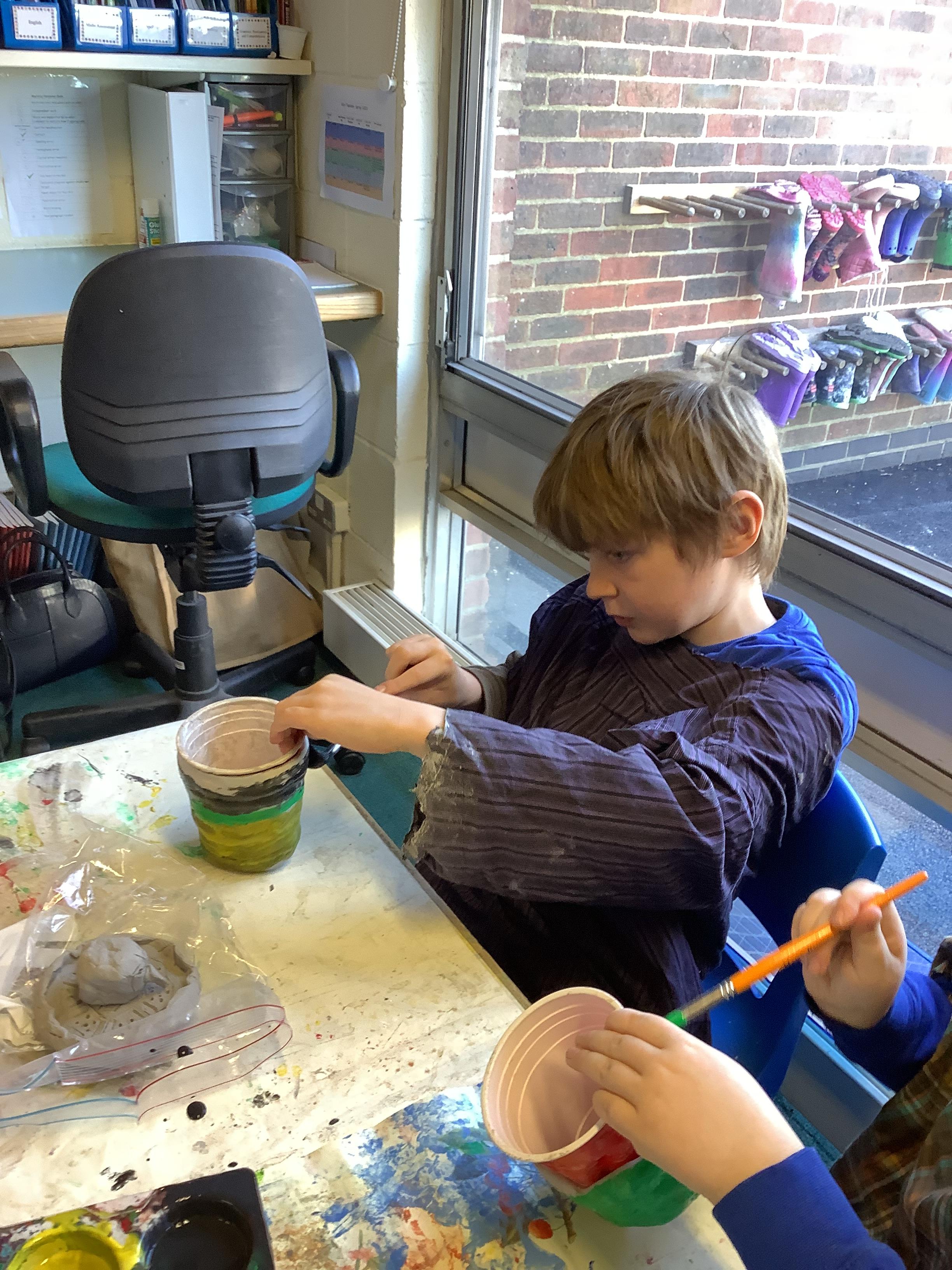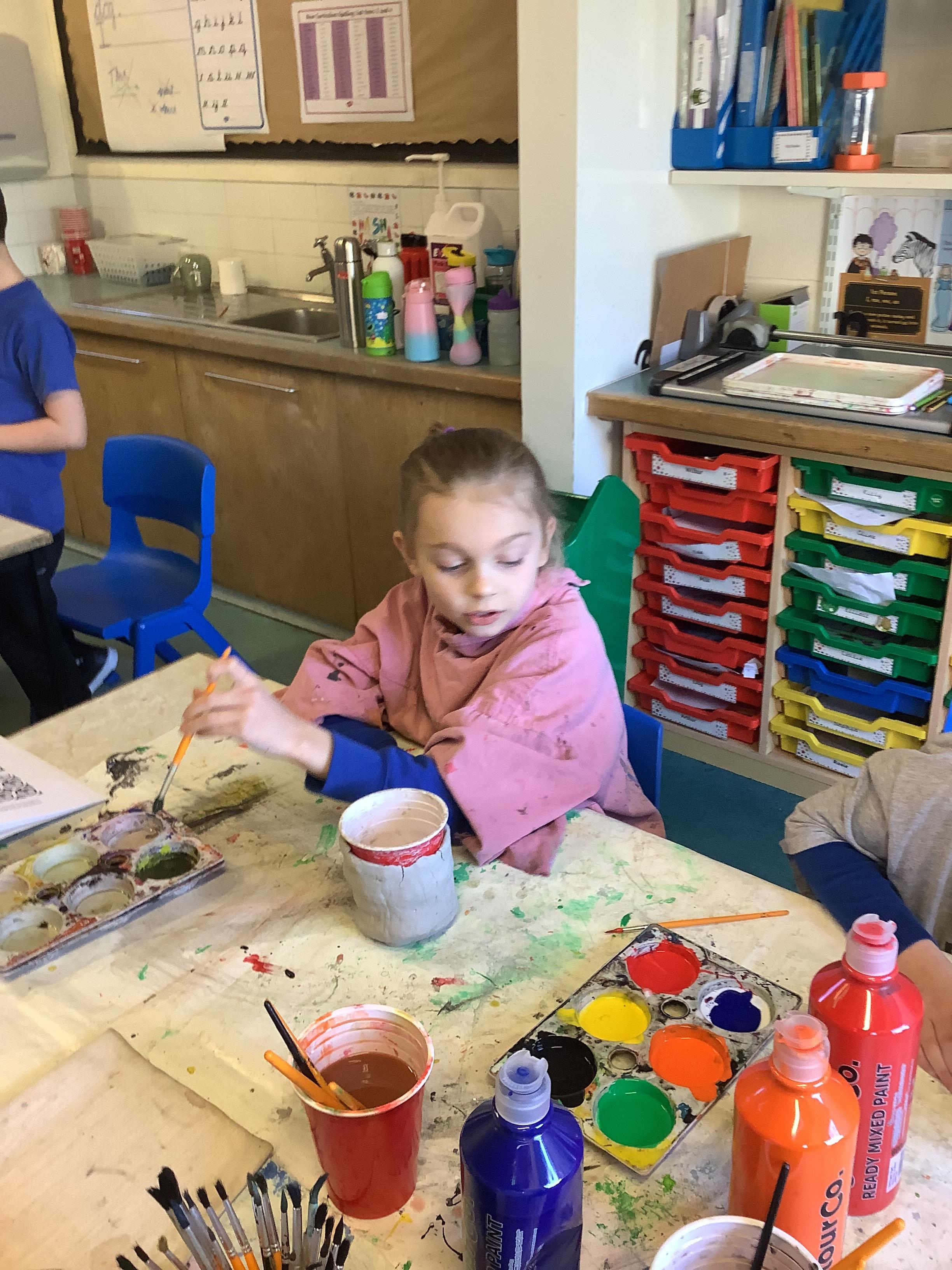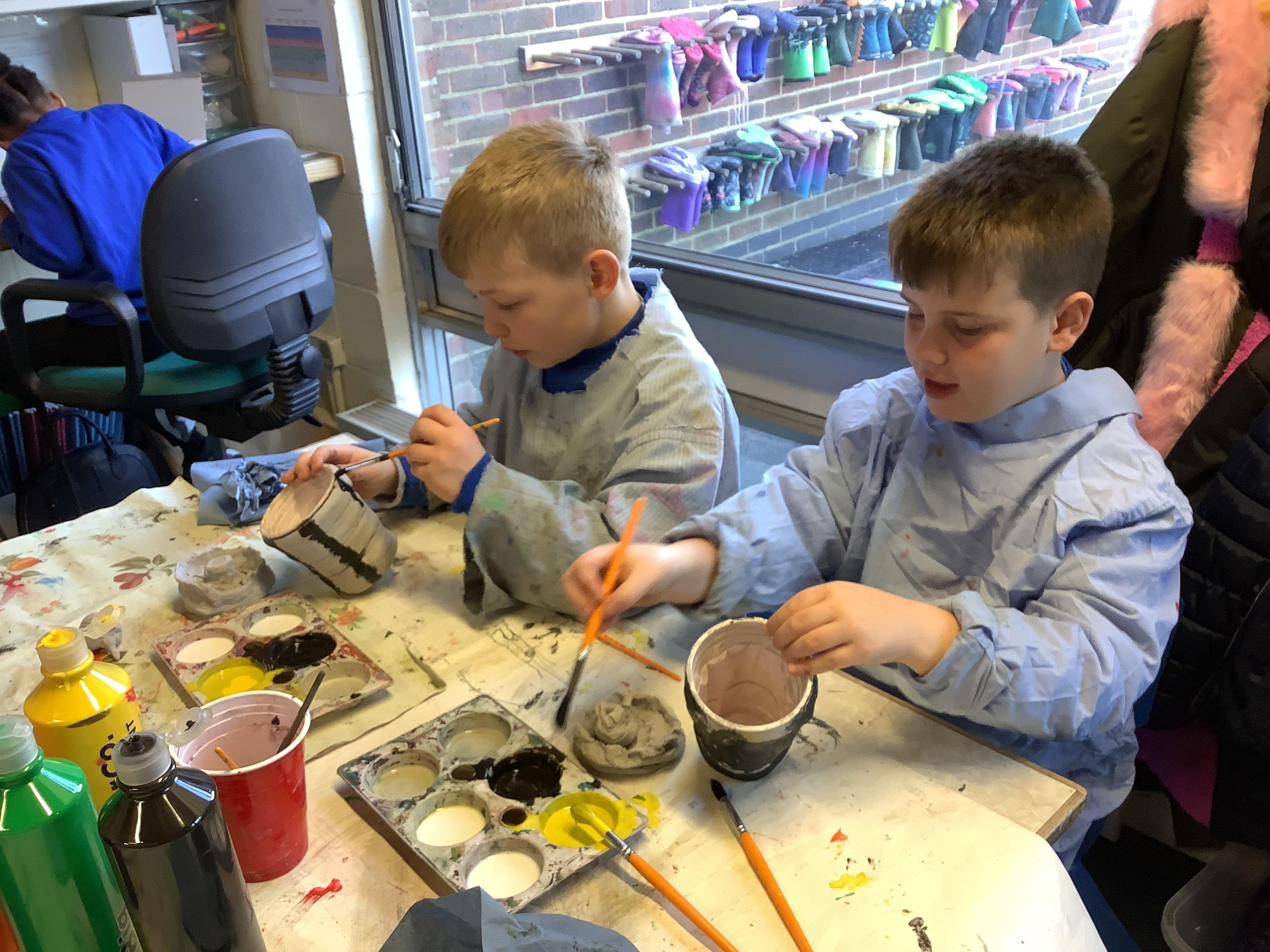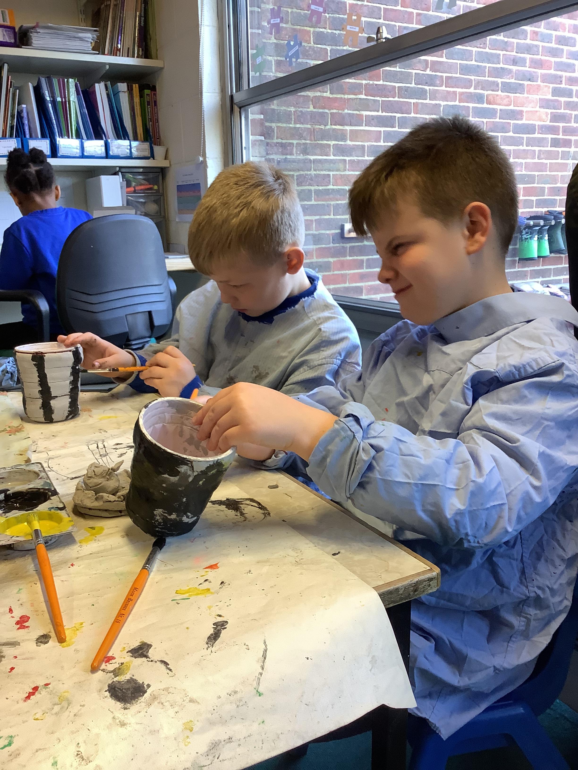 We have worked hard to design, make and decorate our own canopic jars inspired by the Ancient Egyptians. We have included heads of gods on the lid of each jar as well as heiroglyphics for decoration. These will be displayed in our museum.