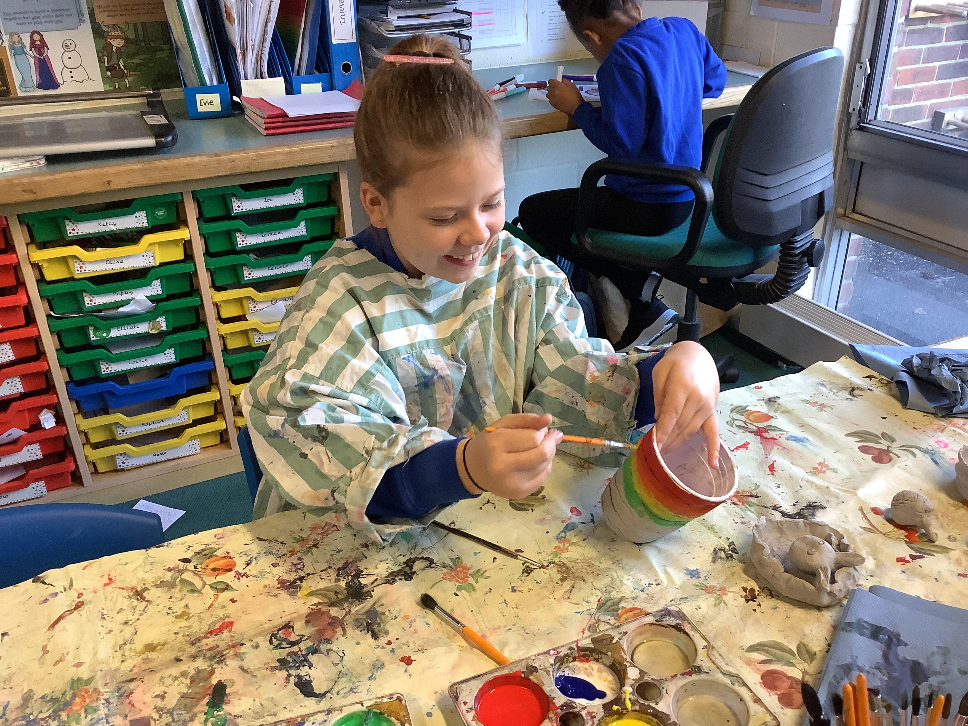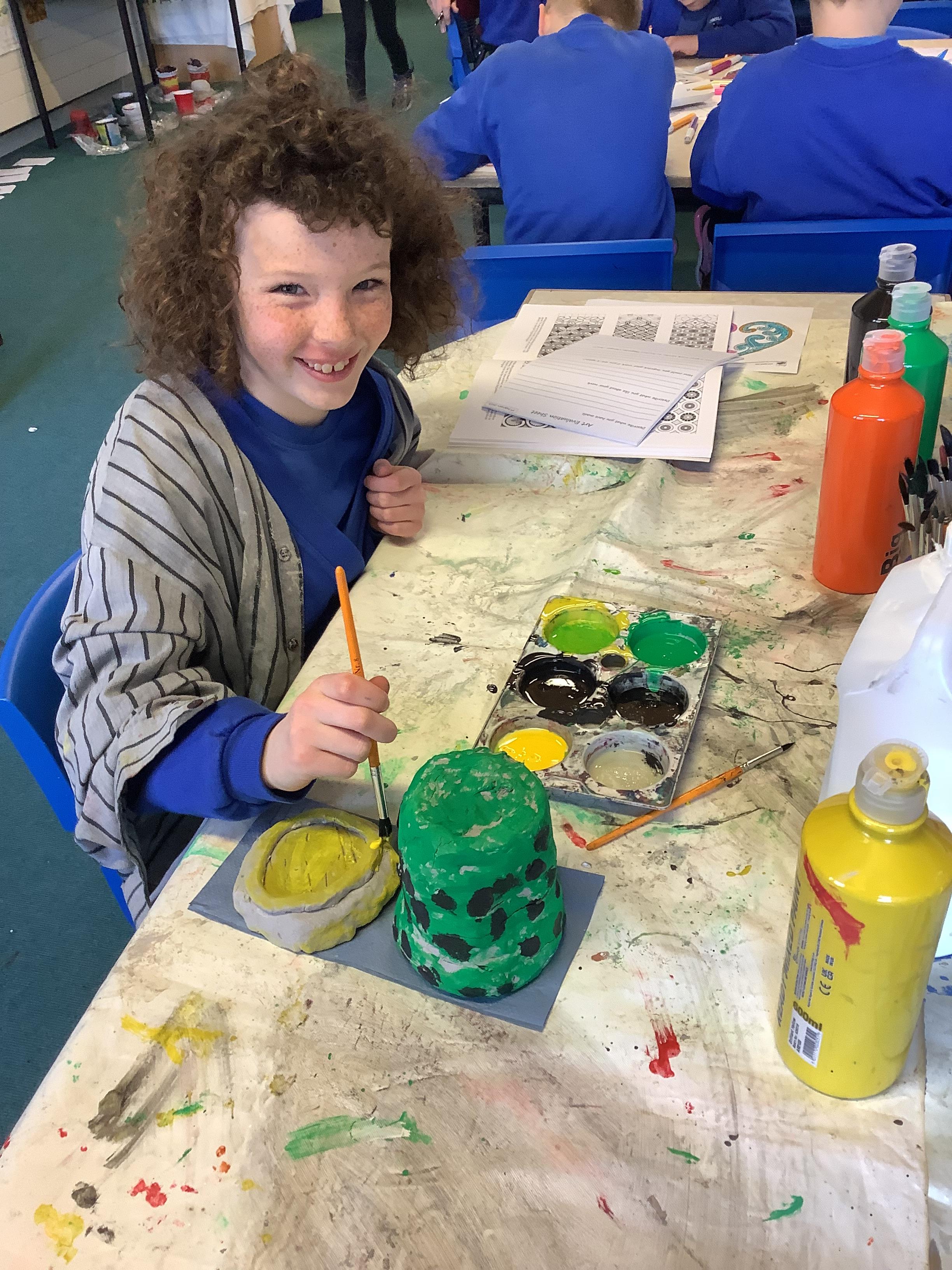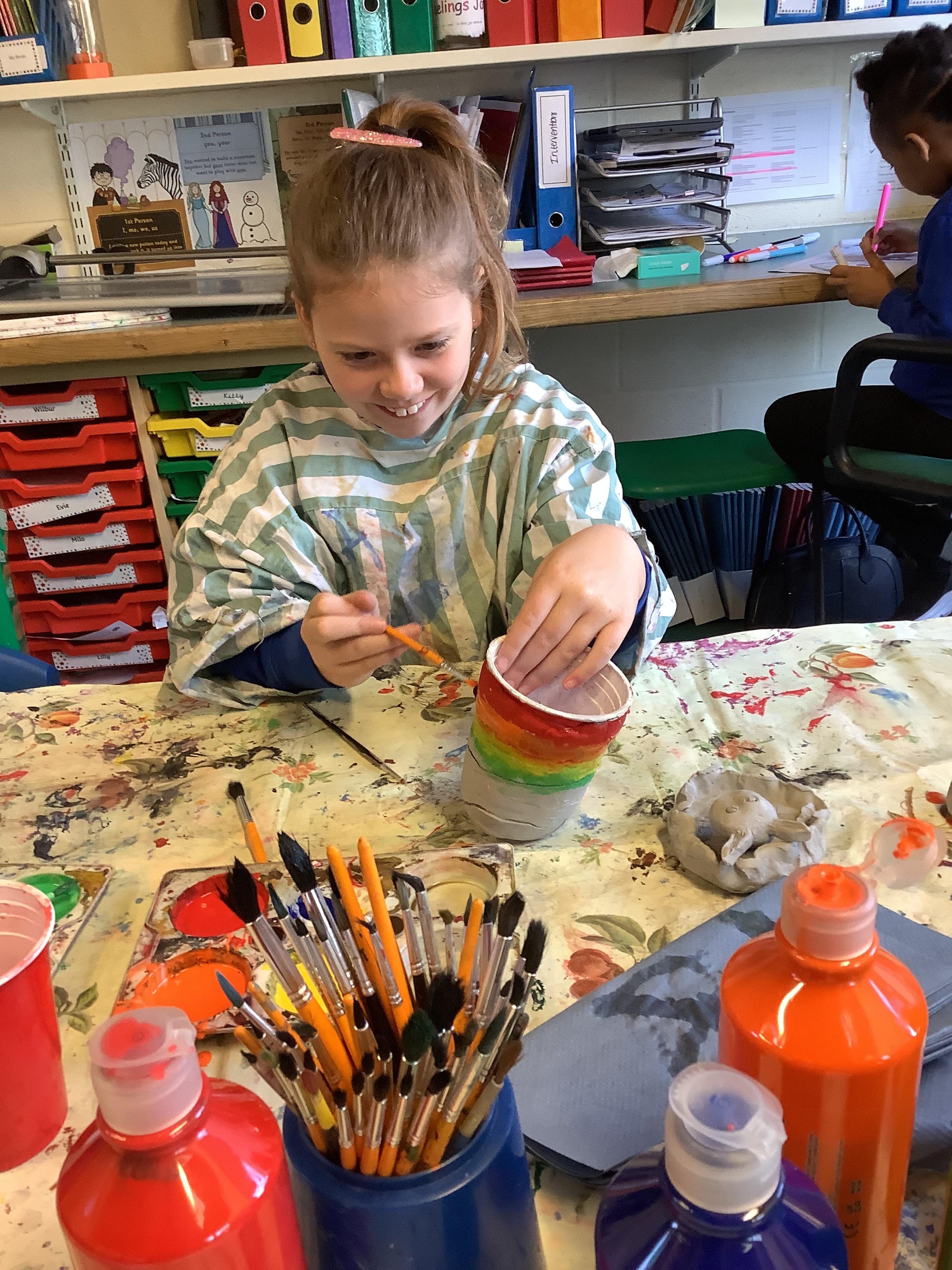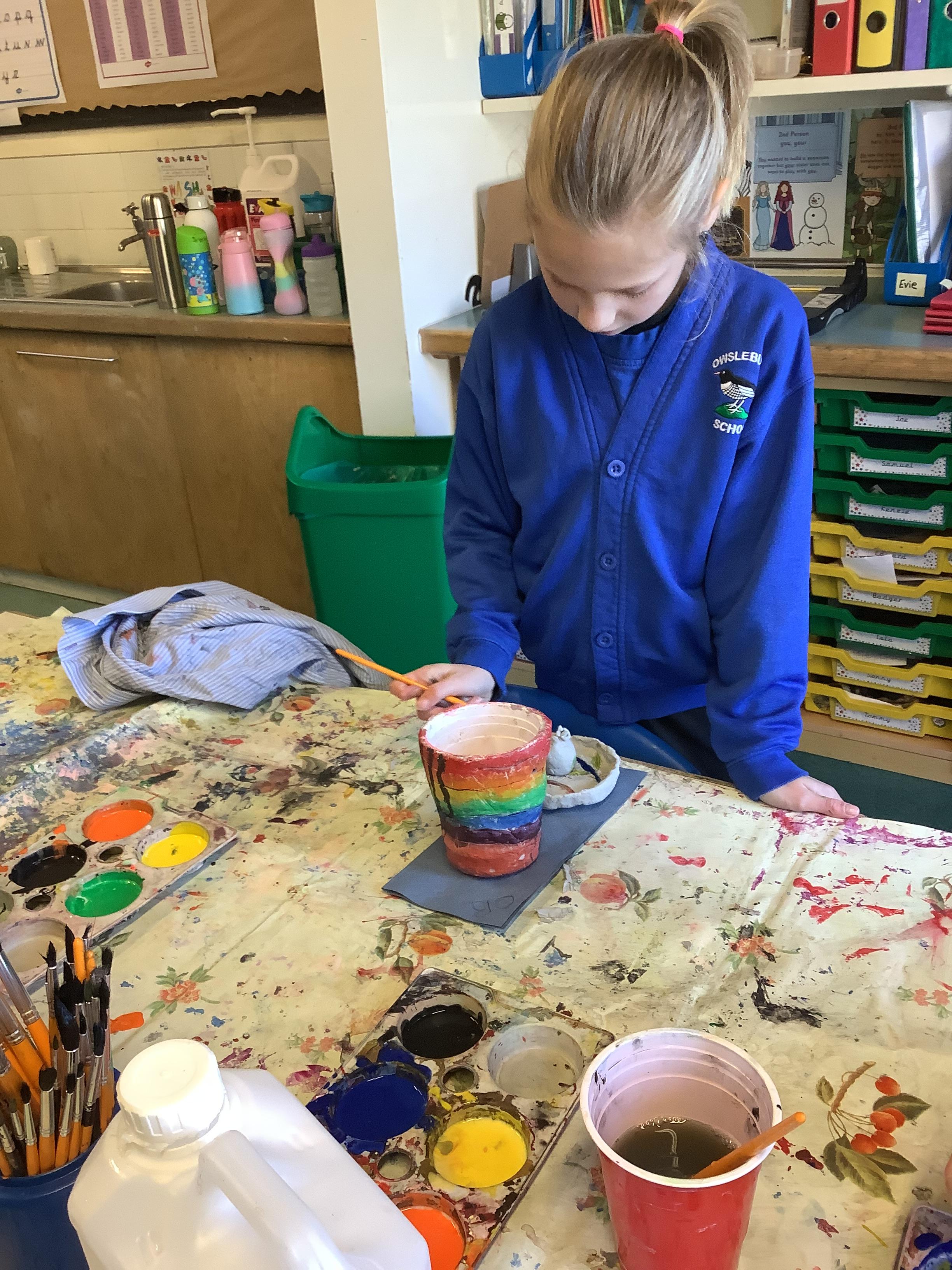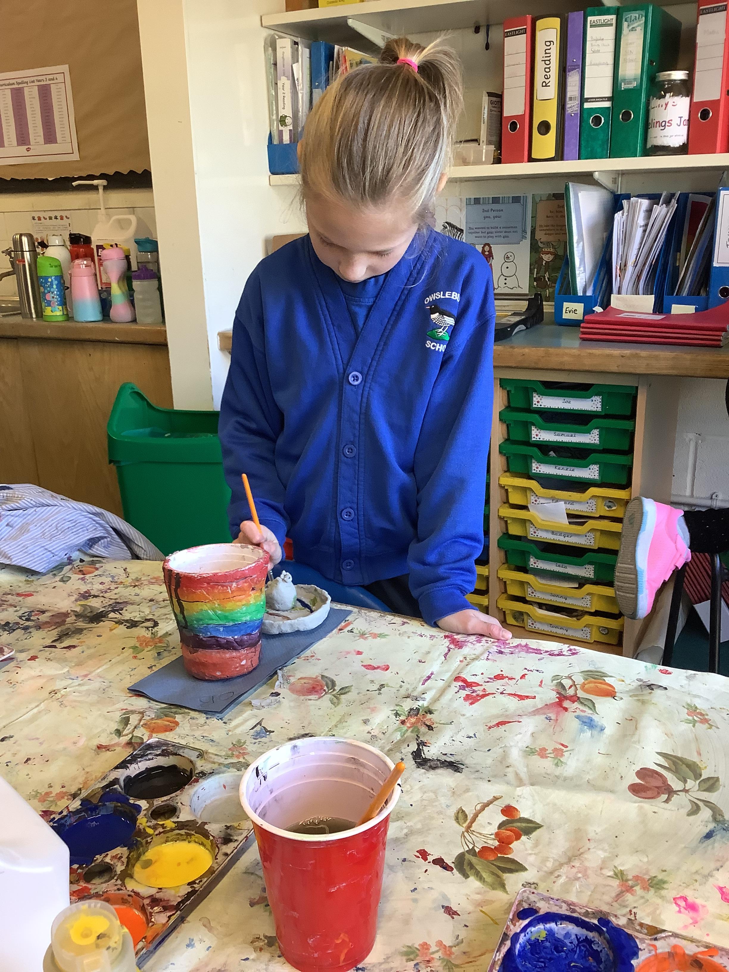 We have worked hard to design, make and decorate our own canopic jars inspired by the Ancient Egyptians. We have included heads of gods on the lid of each jar as well as heiroglyphics for decoration. These will be displayed in our museum.