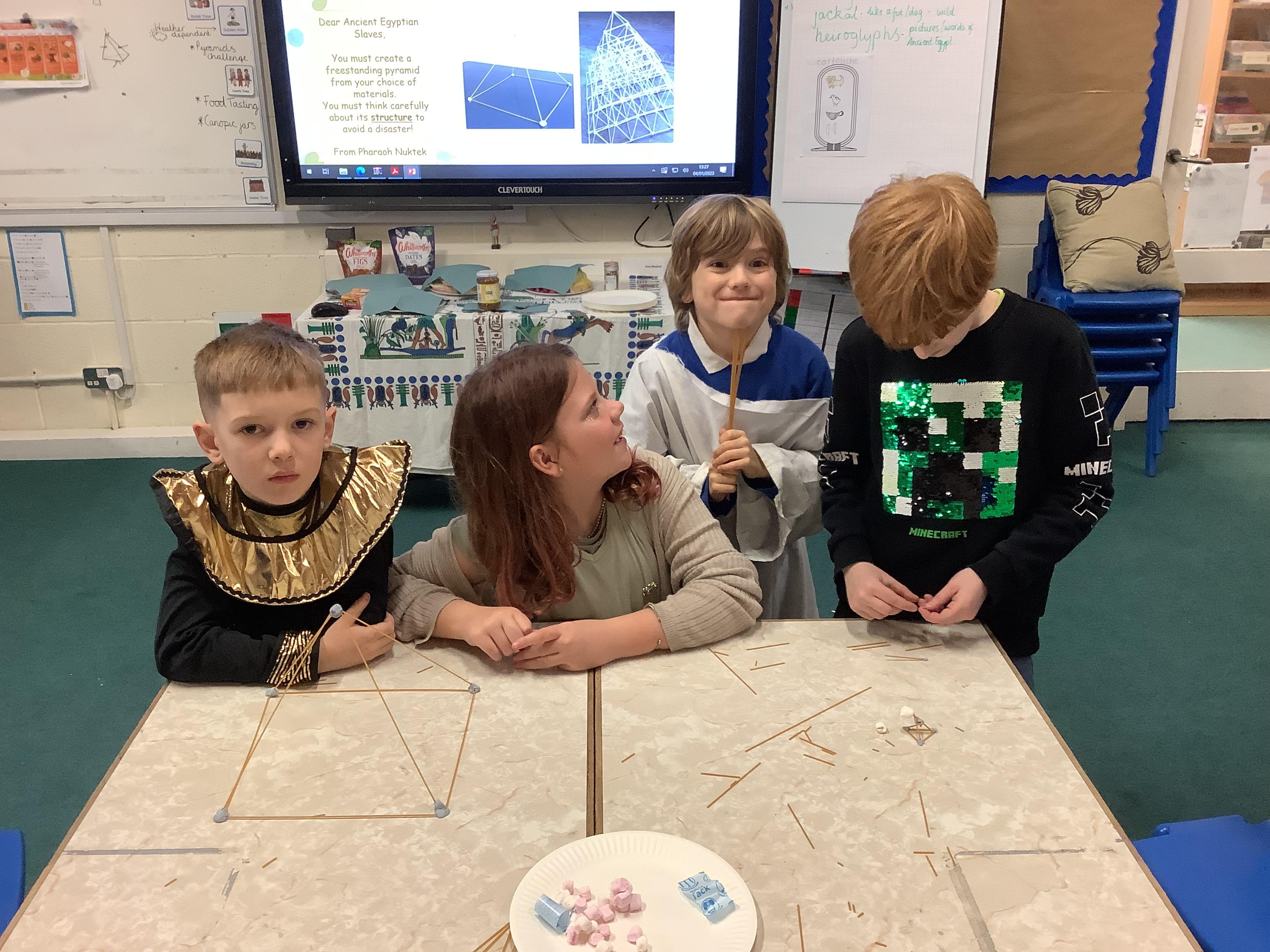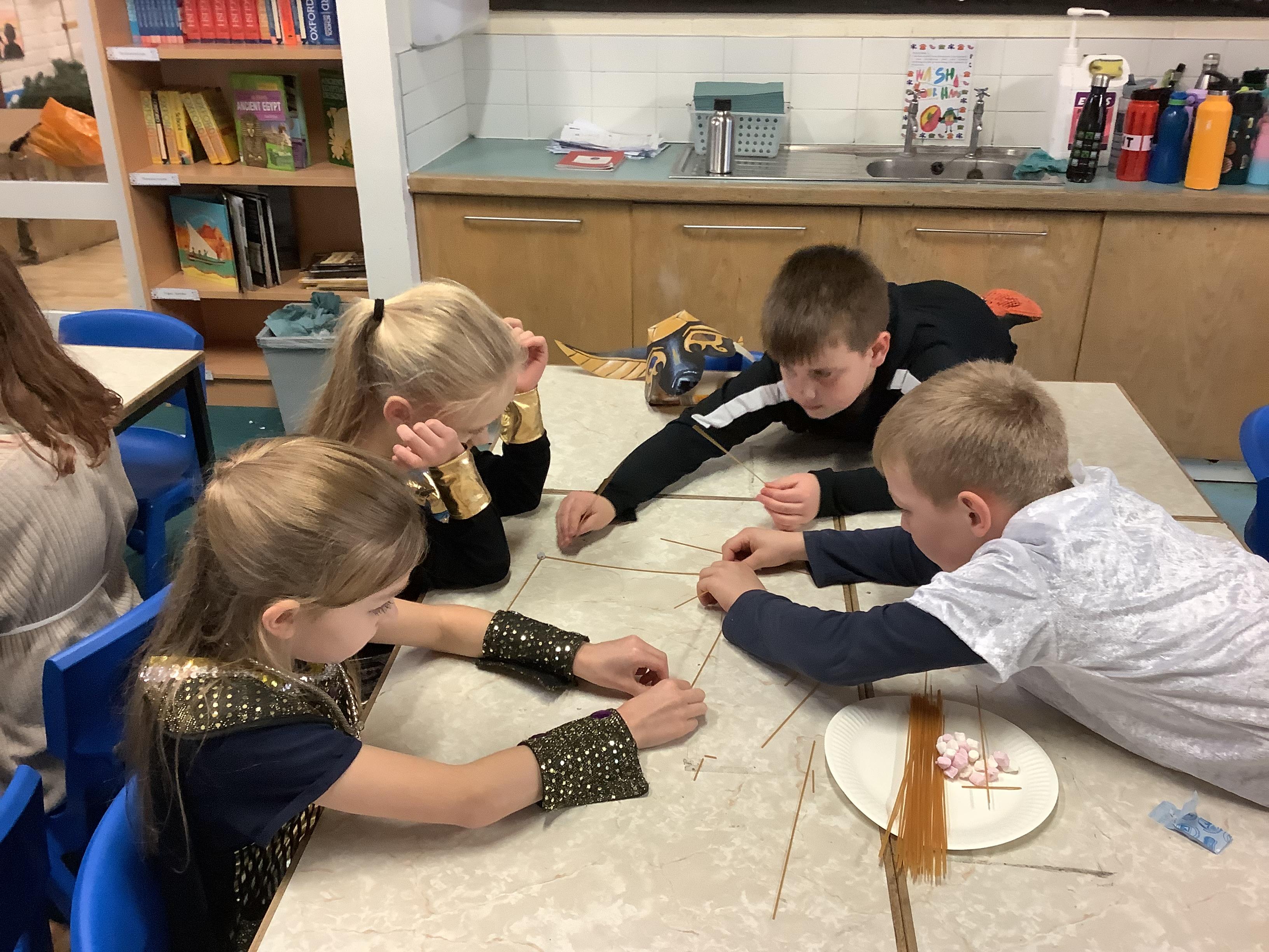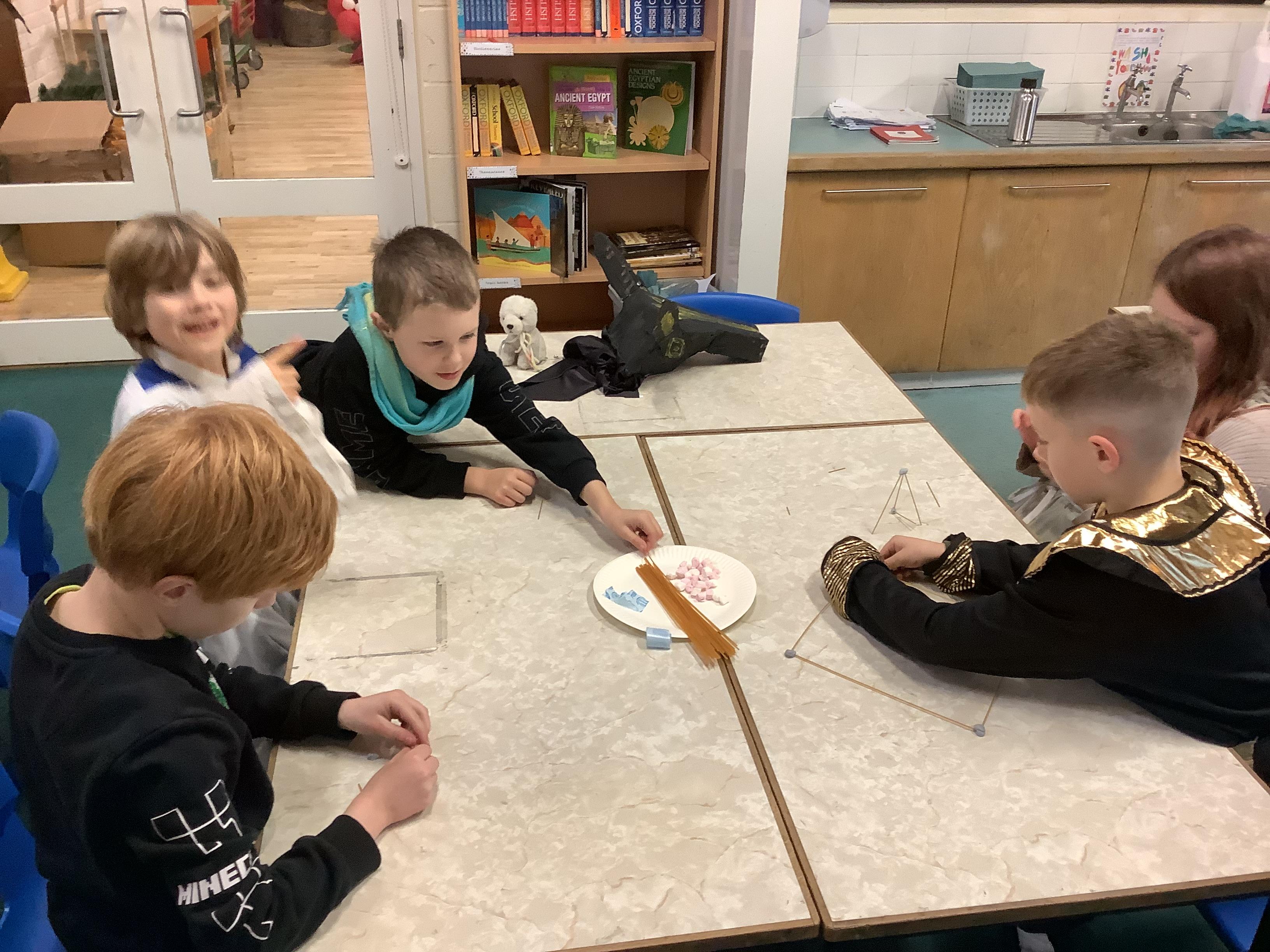 After break we challenged ourselves to build a pyramid using just spaghetti, blu-tac and marshmallows. We applied our learning about structures to make them stable.