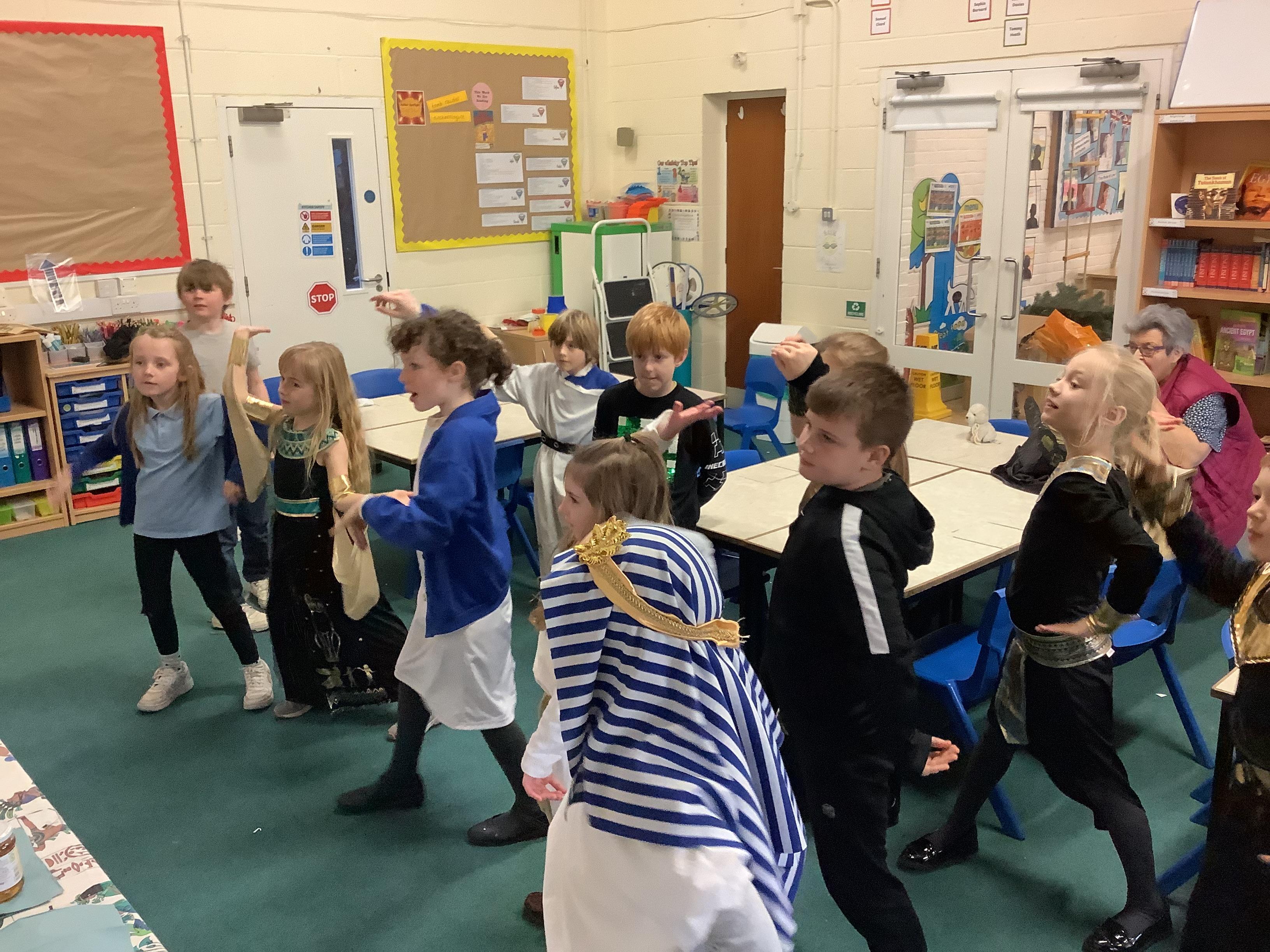 In the afternoon, we enjoyed some Egyptian dancing and food tasting. The children tried flat breads, dates, figs, honey and falafel as these contained the spices and chickpeas found in Egyptian food. The children enjoyed the honey and falafel most.