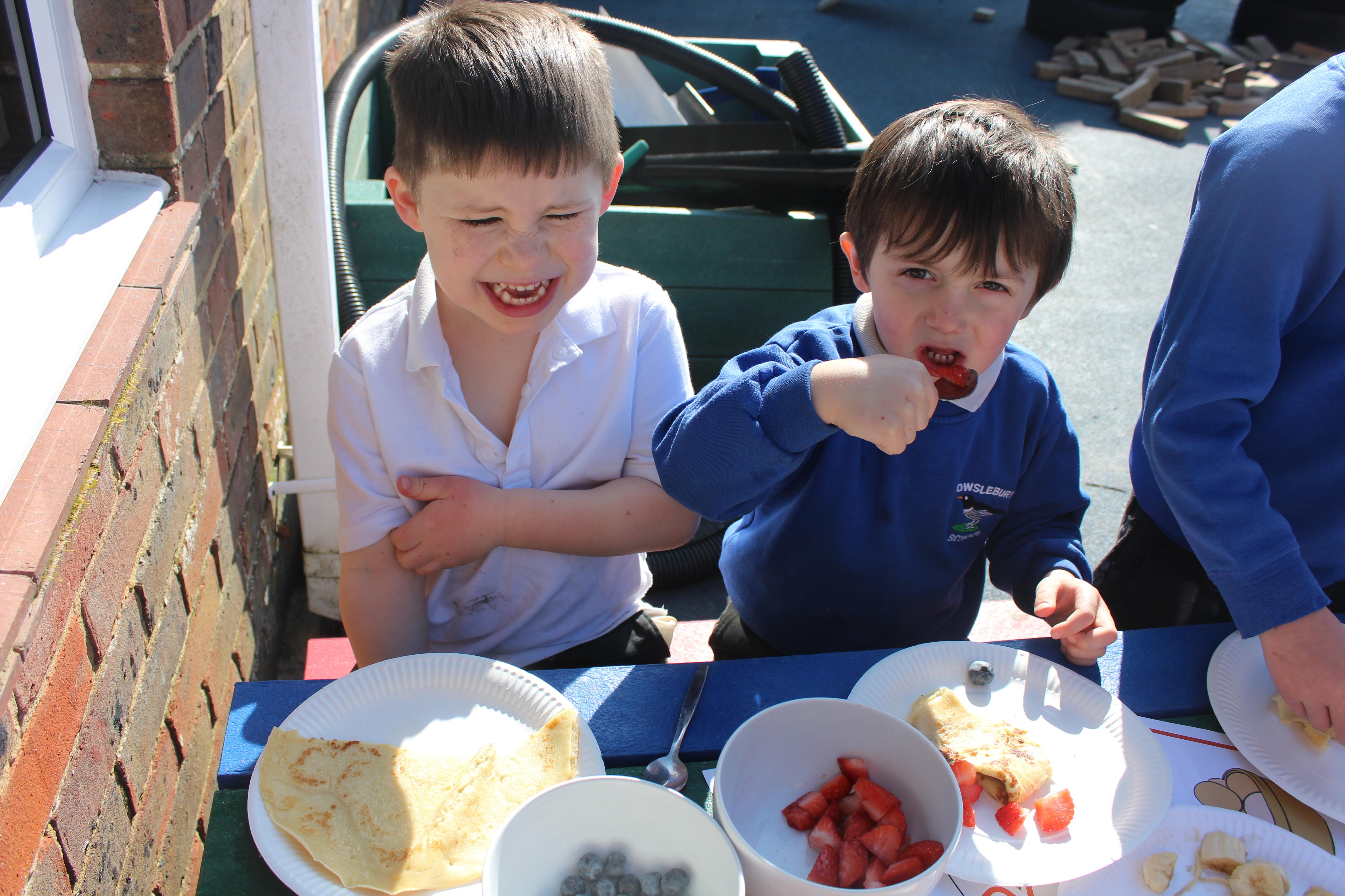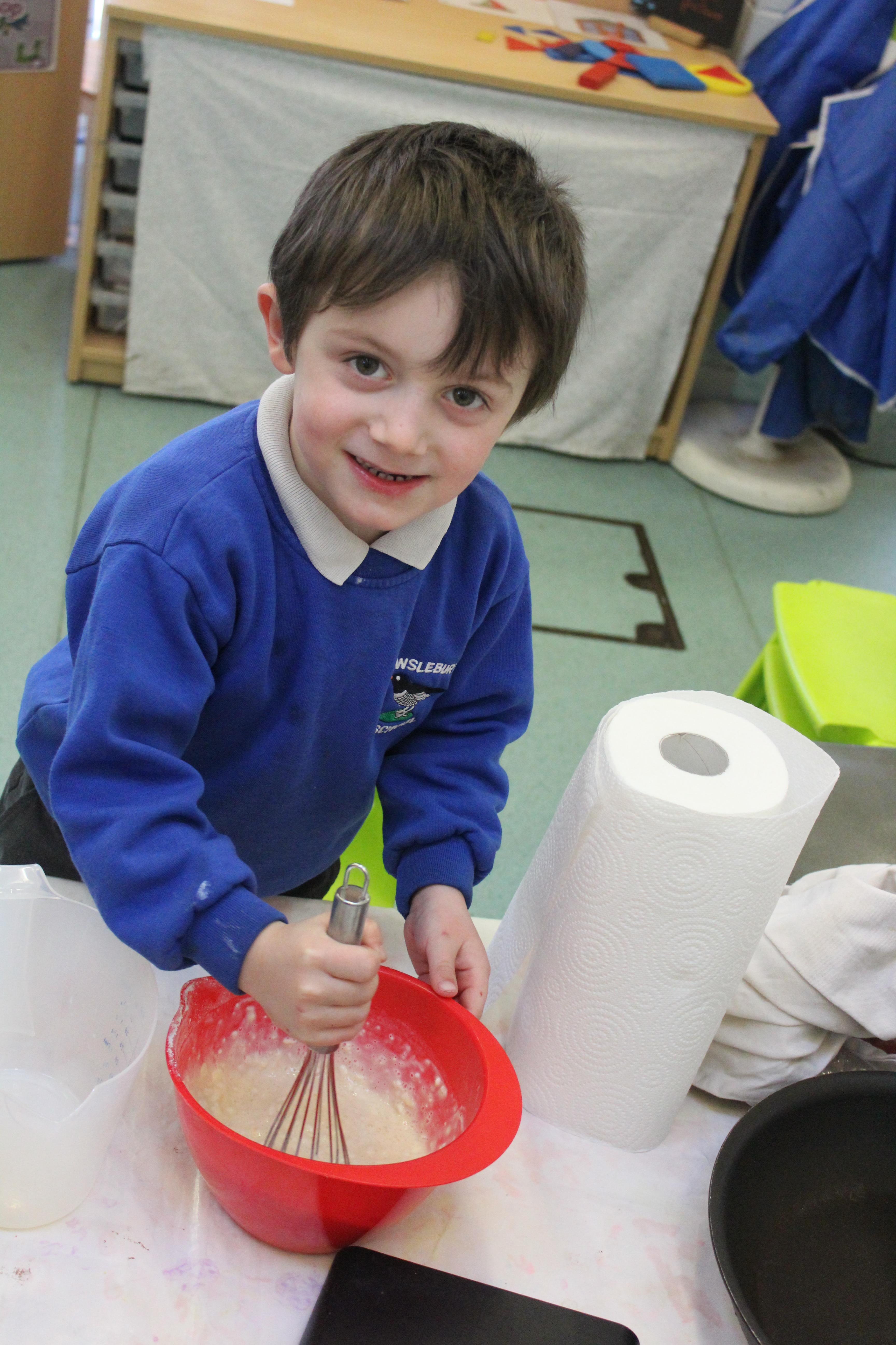 To celebrate Shrove Tuesday we made our own pancakes. After discussing why we make pancakes on this day we watched a video about how to make them. We wrote our own shopping lists and gave them to Mrs Aylward so she could get us the ingredients. The next day we weighed and mixed the ingredients to make the batter and Mrs Emery cooked them for us.