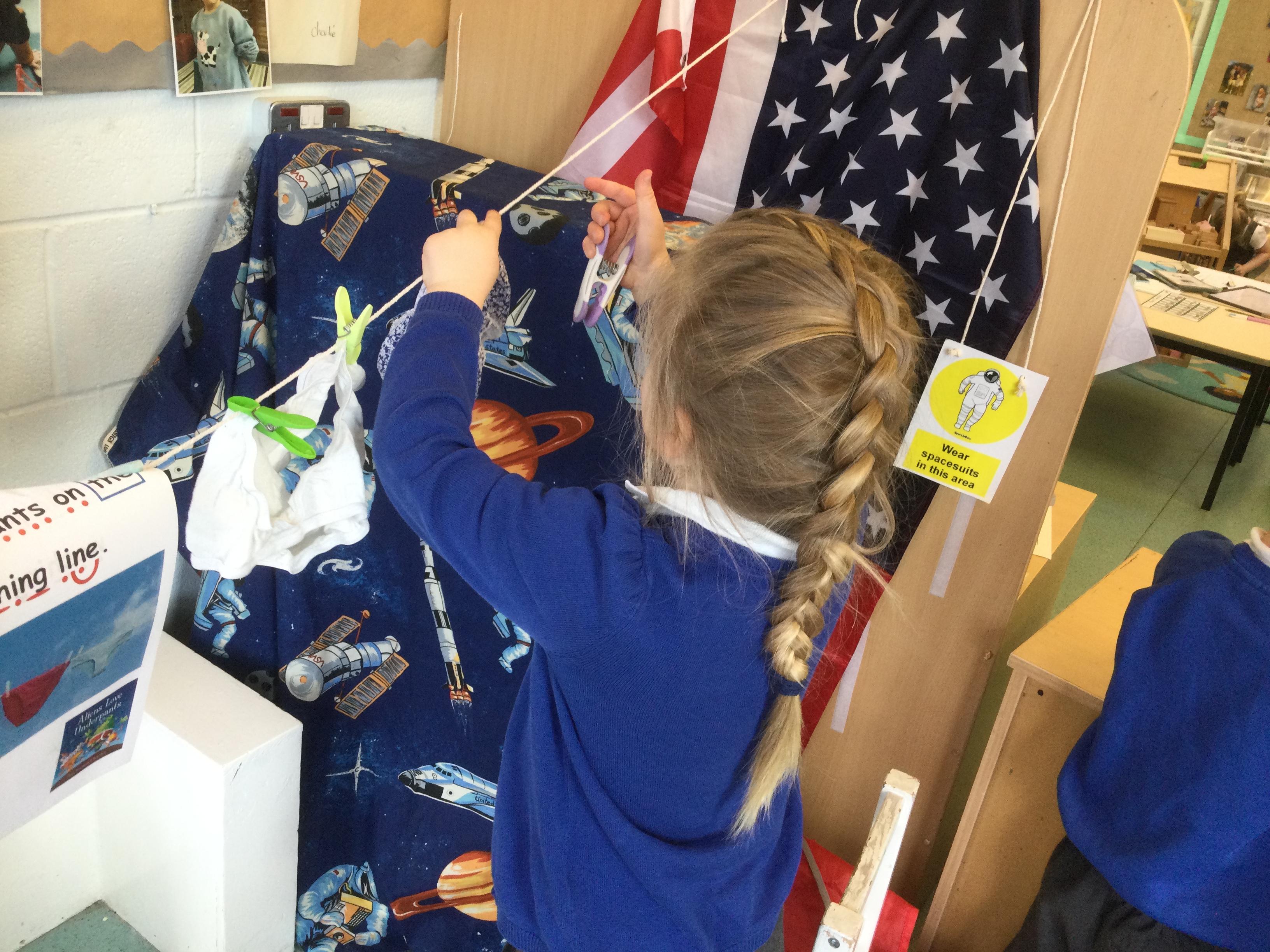 In our role play area we have a new space station with dressing up and the children have enjoyed taking on different roles to explore space. We also set up a photo booth where the children could take selfies with the ipad.