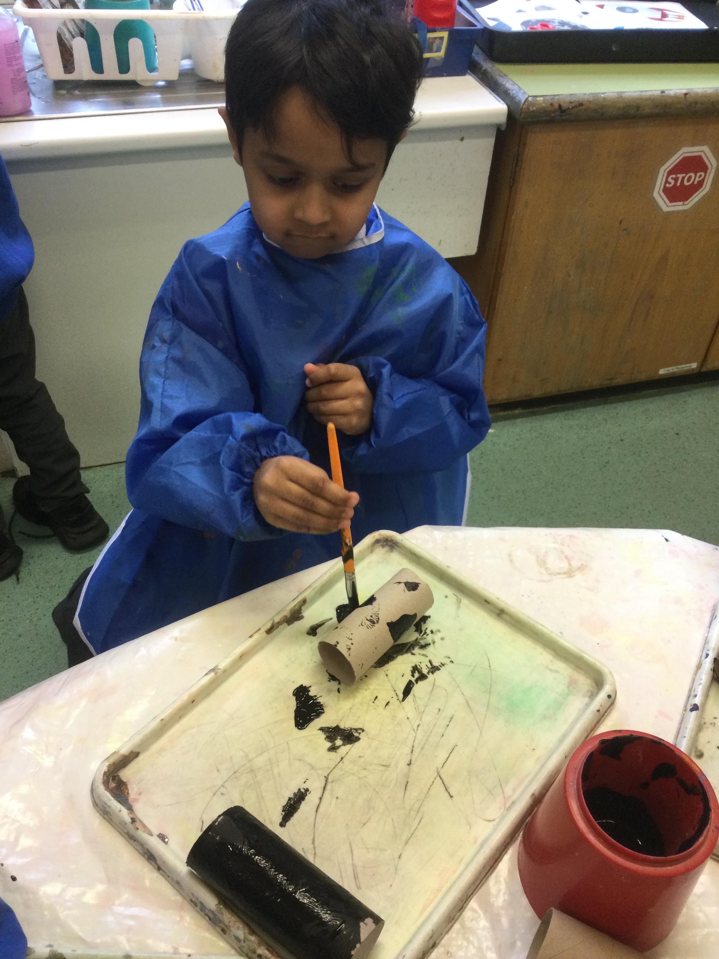 In the creative area we decorated pictures of planet earth using cotton buds and made rocket sun catchers using tissue paper. We also made space bottles using glitter tissue paper and water and enjoyed watching the patterns made as the glitter moved slowly as if it was floating through space.