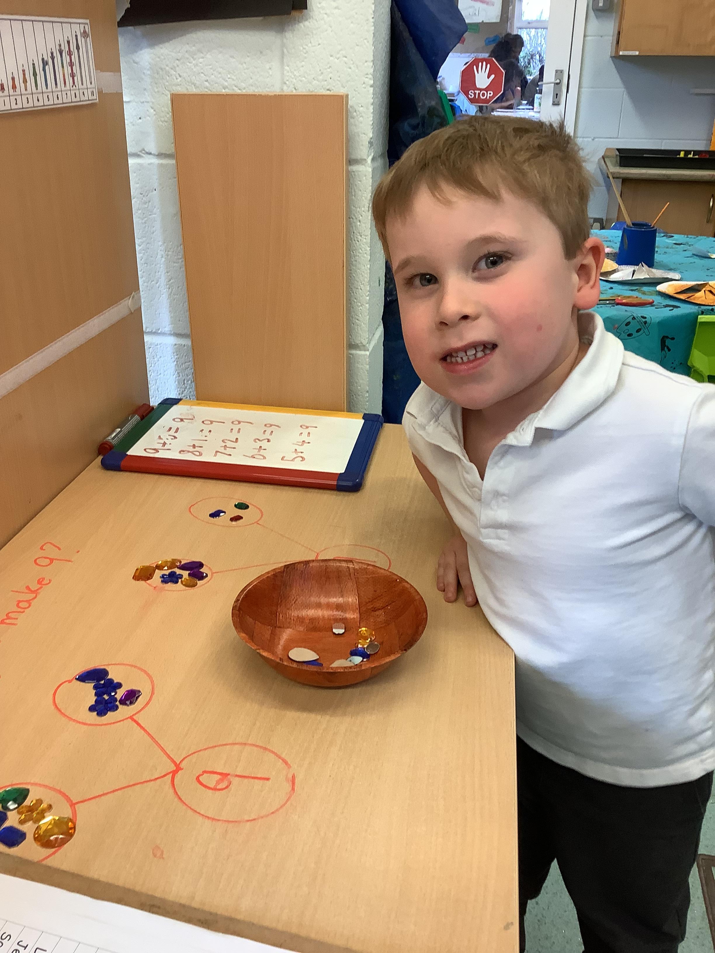 In maths have been exploring ways to make the number 9 and used part whole models to show this. We have also been exploring length and height before moving on to looking at events in time such as days of the week or times in the day.