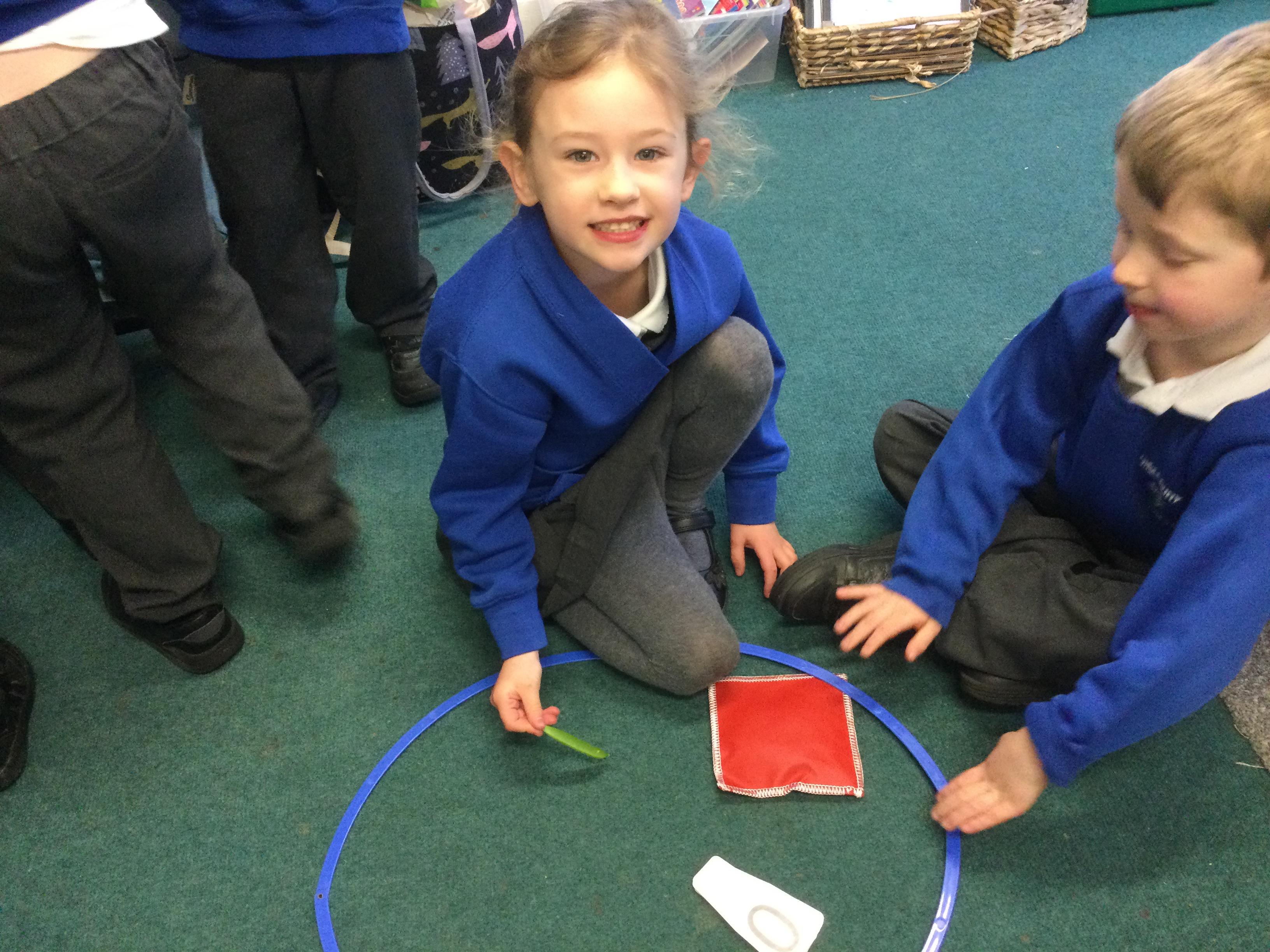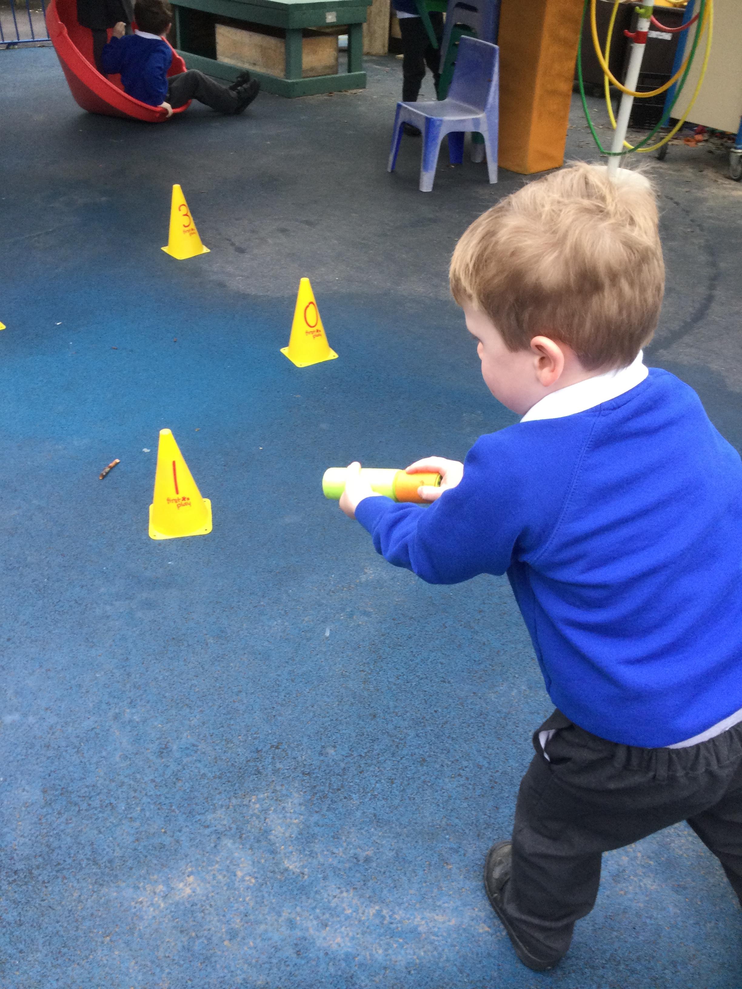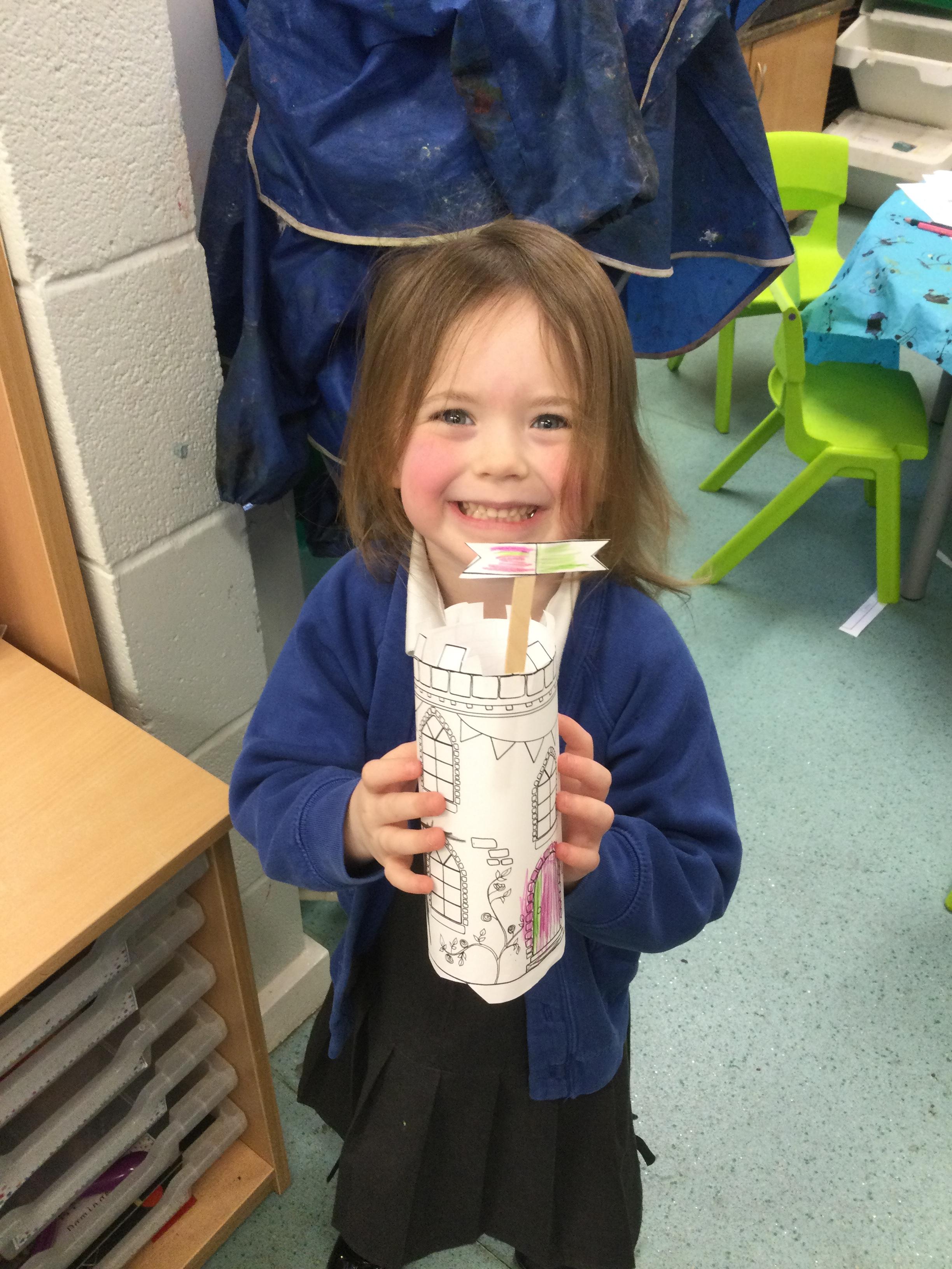 As part of Discovery time we have been writing invitations to our royal banquet, rolling dice and using water squirters to aim for the numbered cones, threading coloured disks to make necklaces, using the Duplo to make castles and practising our cutting skills to make our own paper castles. We have also been using junk modelling to make castles and palaces.