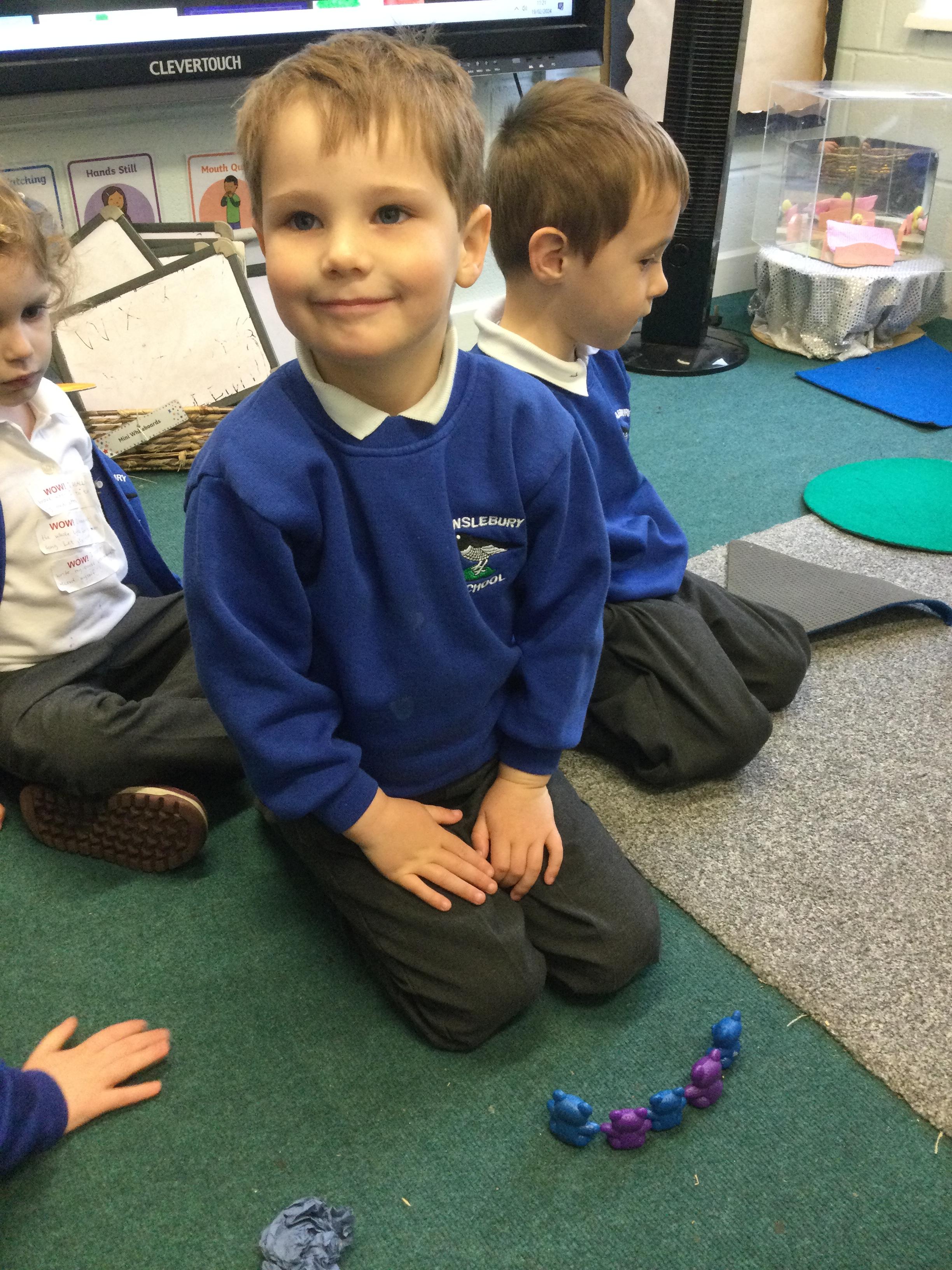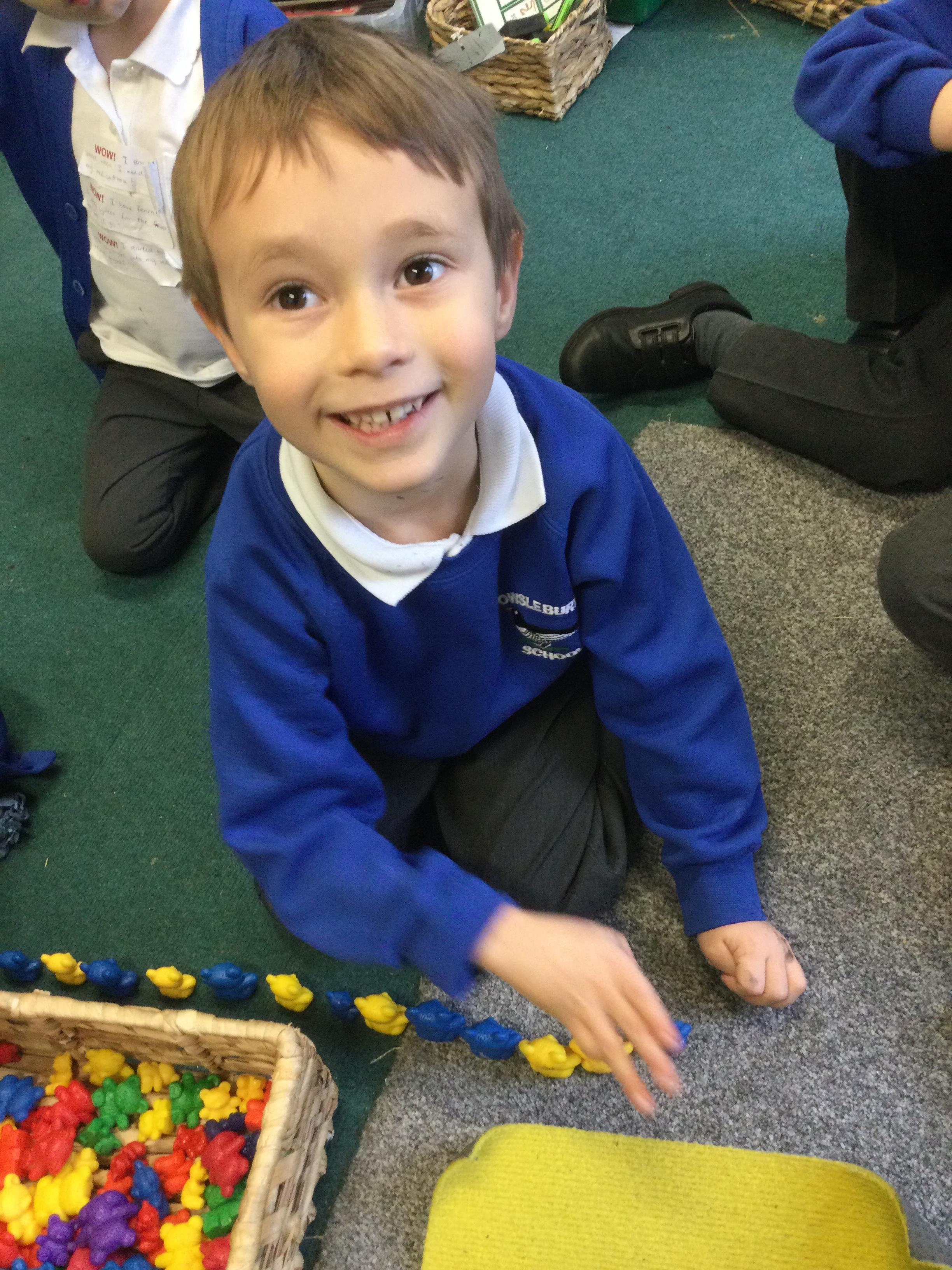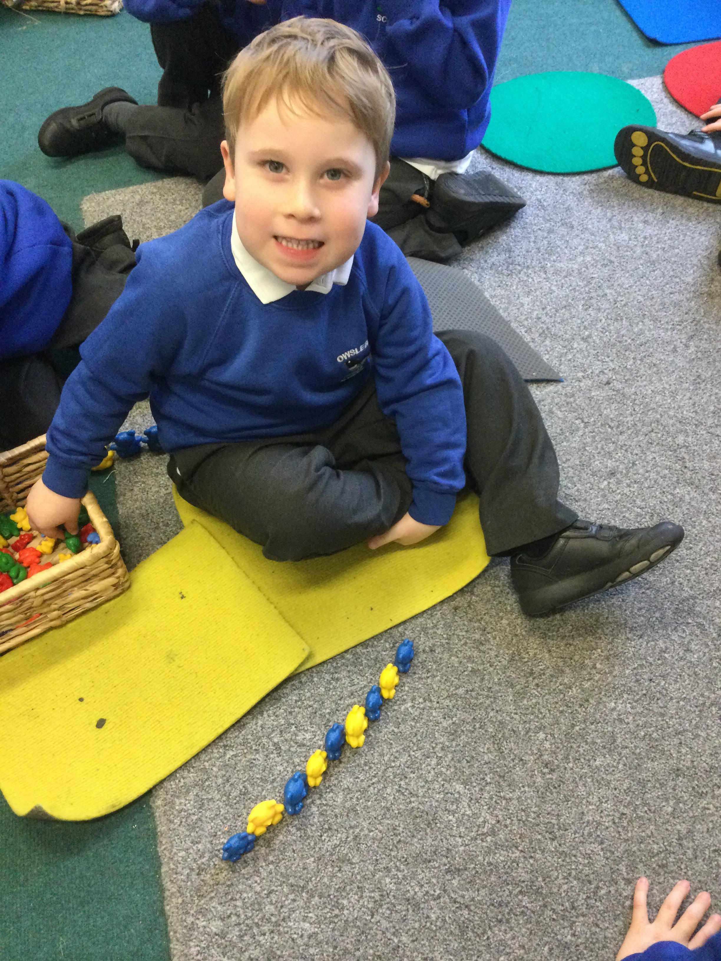 In maths we have been looking at repeated patterns using colour and size as well as sequencing simple events in time such s getting up, having breakfast and getting dressed.