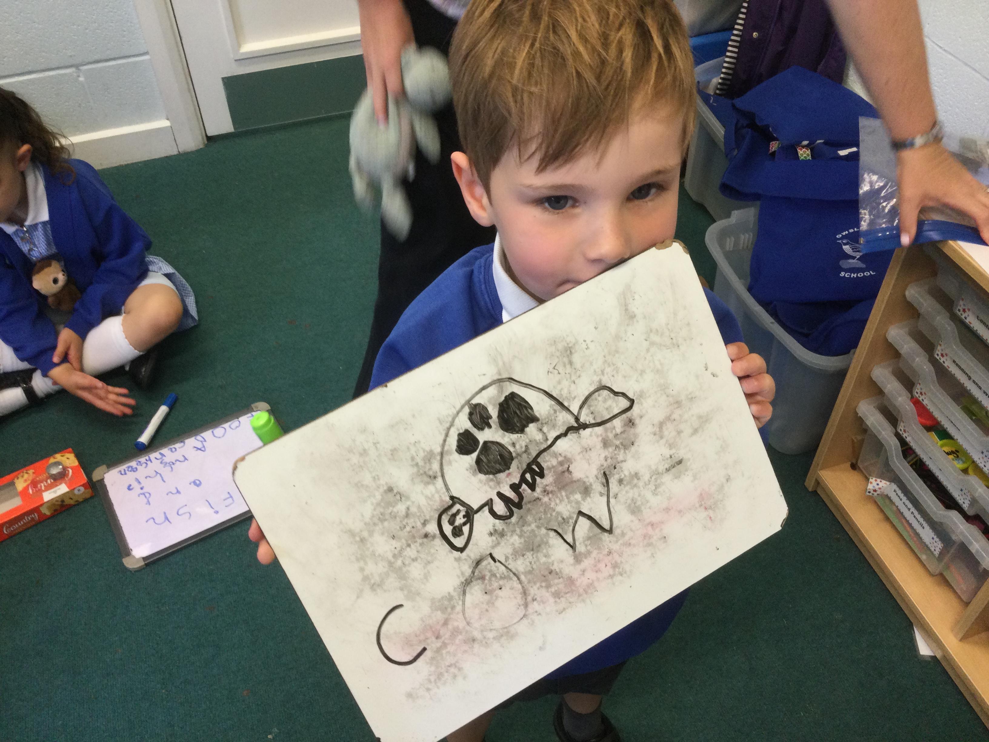 In Drawing Club in Marwell this week we watched 'Mr Benn the Zookeeper' and then drew his character and the setting. We have been very impressed with some of the creativity shown during these sessions and children's enjoyment of exploring ideas through drawing. We have also noticed some of the children's pencil grip developing.