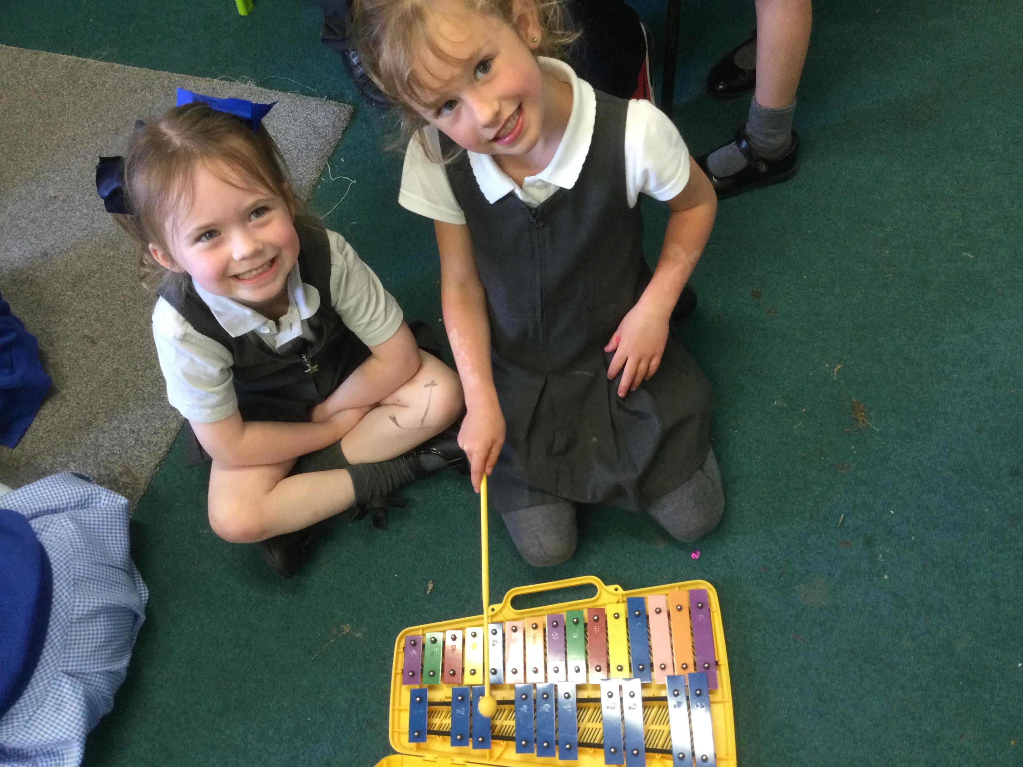 In music this week we explored the glockenspiels after talking about music we enjoyed and pitch. We also talked about the genre 'funk music' and how sometimes it makes us want to dance. We played a game where one child played a note and we had to find it on our glockenspiels.