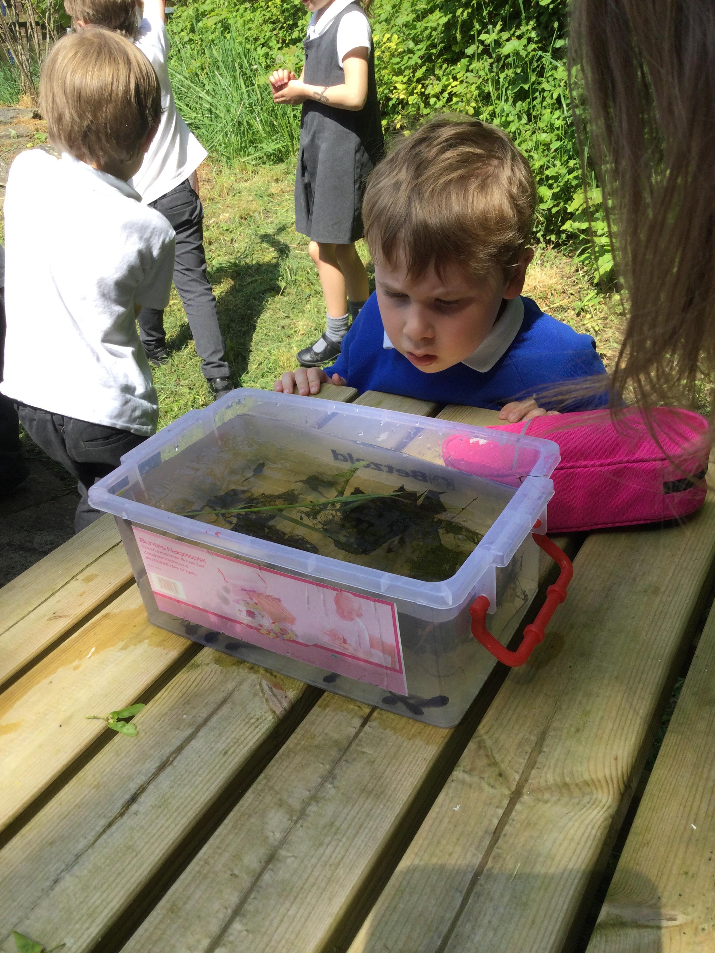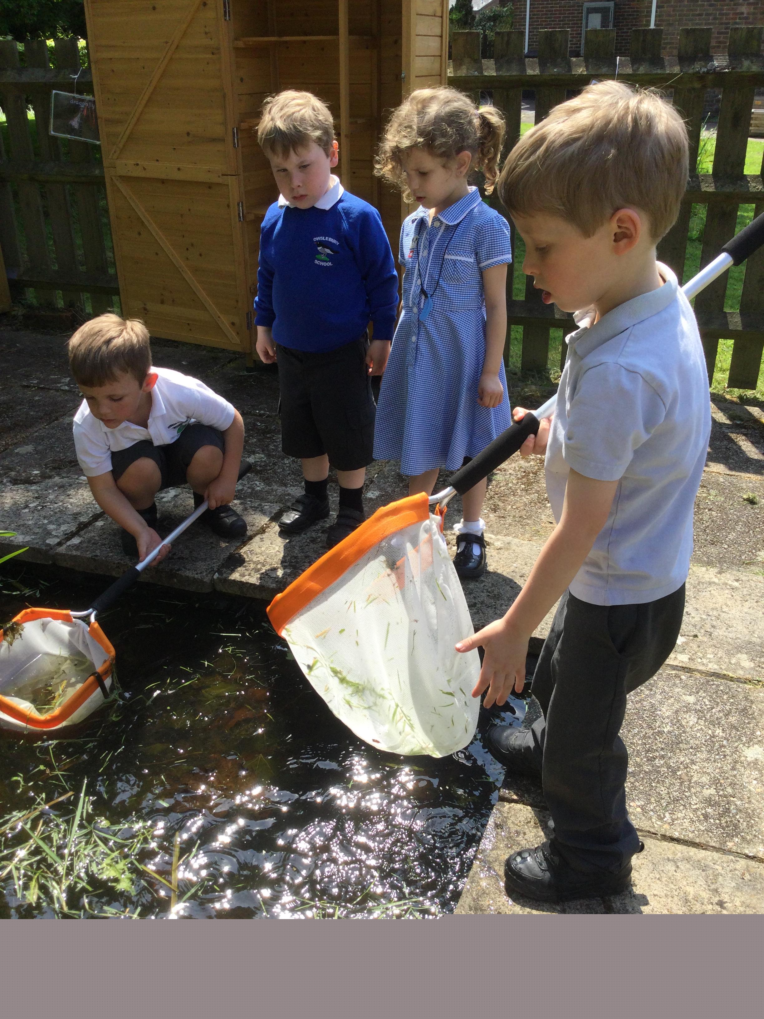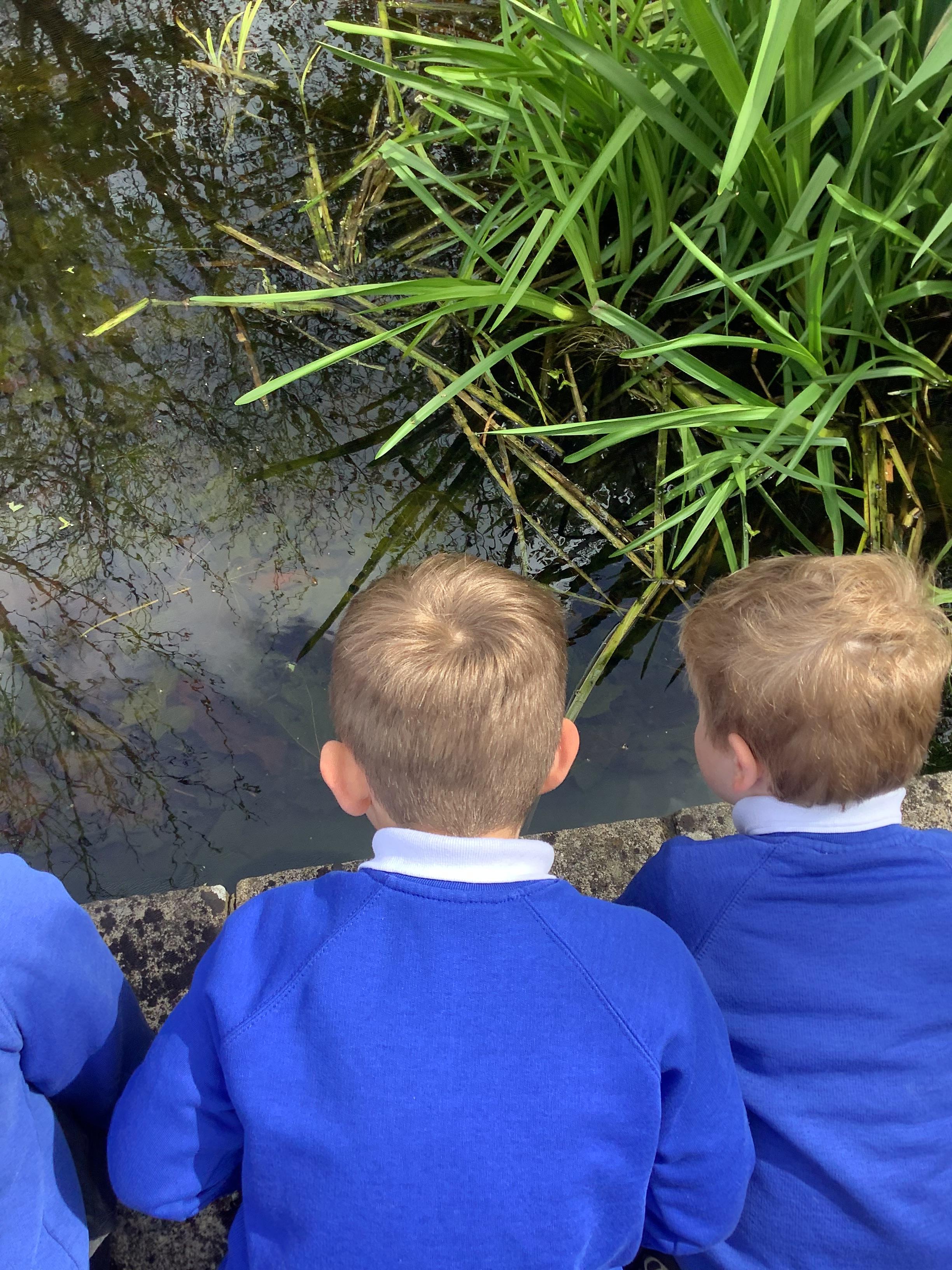 On Thursday, Mrs Chaplen took us to the school pond. We enjoyed using the nets and taking a closer look at the real life tadpoles who were beginning to turn into froglets. We loved sharing what we found and demonstrated excellent listening and turn taking skills.