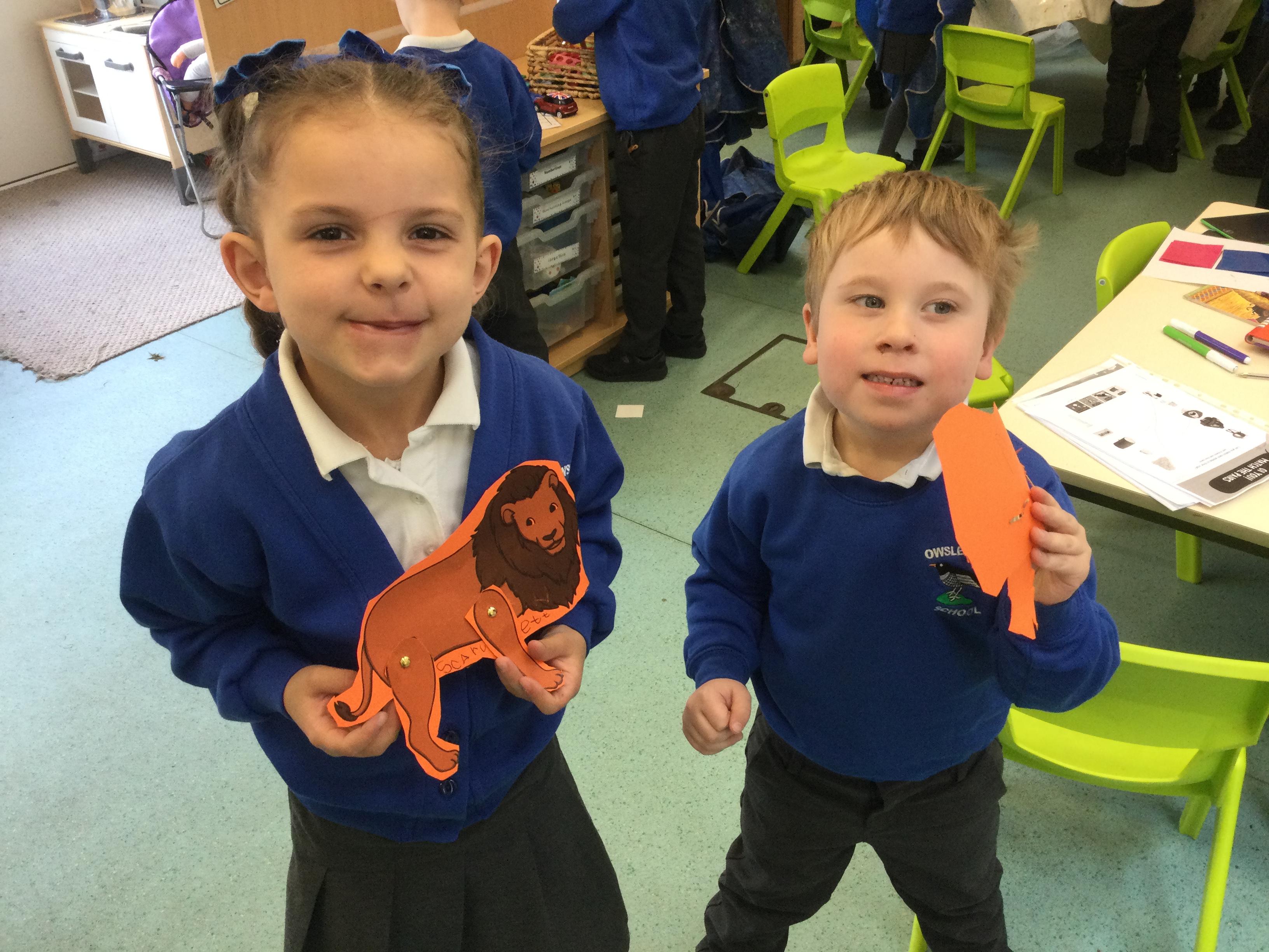 We created our own split pins lions, cut up spaghetti in the funky finger area from the lion's mane and learned about lions in the wild and their habitats.