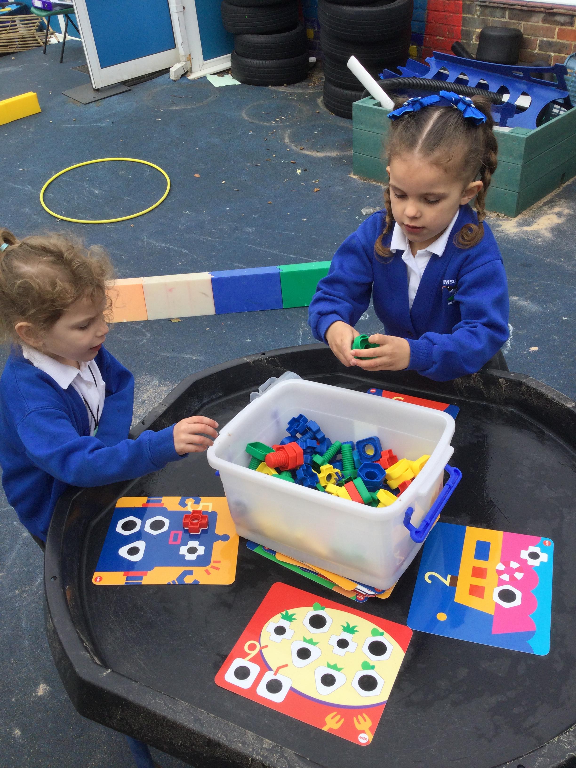 In the maths area we have been matching ladybird spots to make number bonds to 10, we have been making maps of the farm in the story and talking about features you might find on a map.