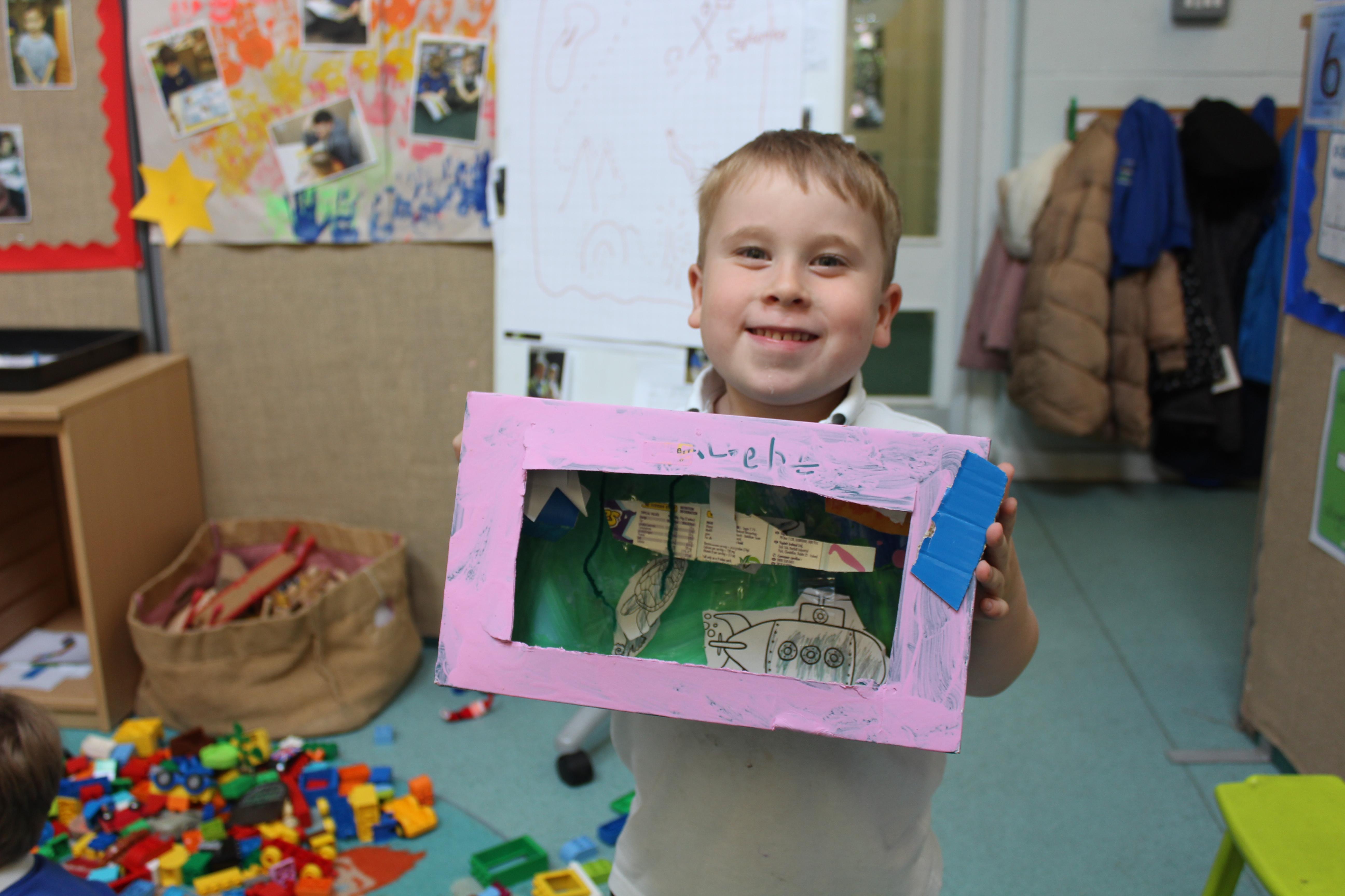 This week in Marwell class, we have been learning about above and below the sea. We have created our own aquariums showing off our cutting and painting skills. The children enjoyed discussing which sea creatures they would add to their aquariums and demonstrated great resilience when cutting, gluing and decorating their creations.