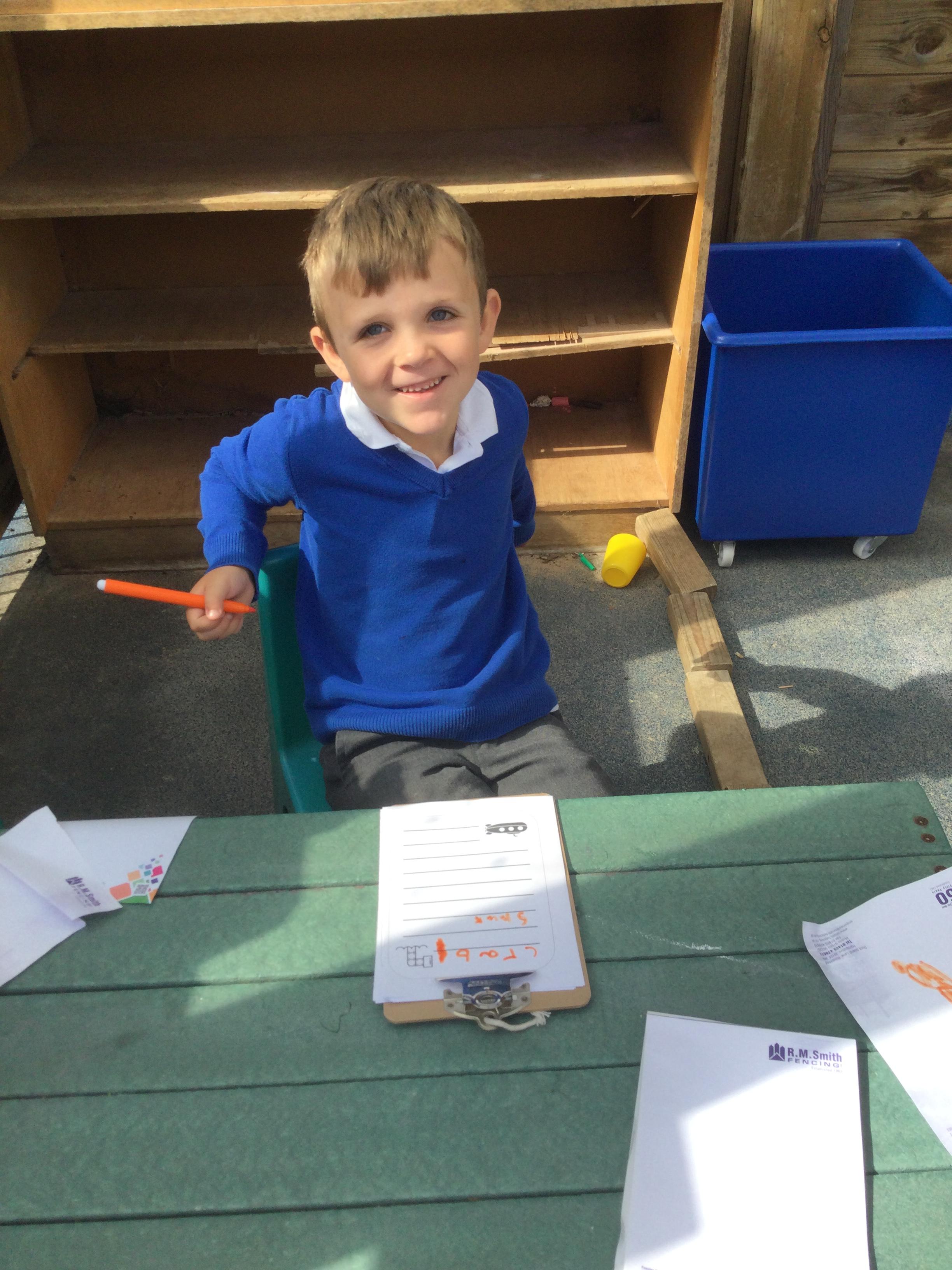 On the writing table we wrote about our favourite part of the farm trip. We focused on sounding out and writing a sentence independently with finger spaces.