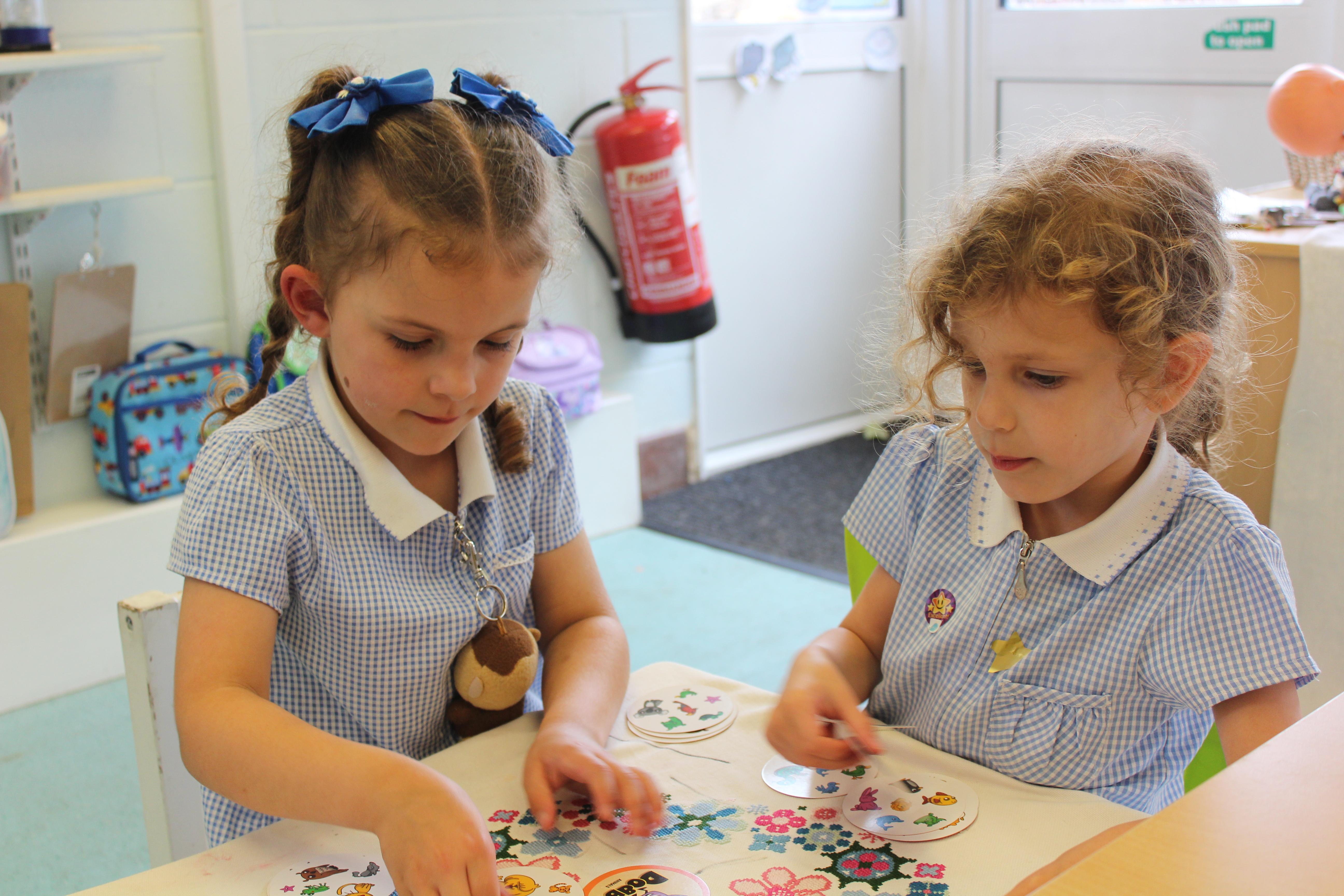 In the playdough area we have used pinching and shaping skills to create fish before decorating them with beads and gems.