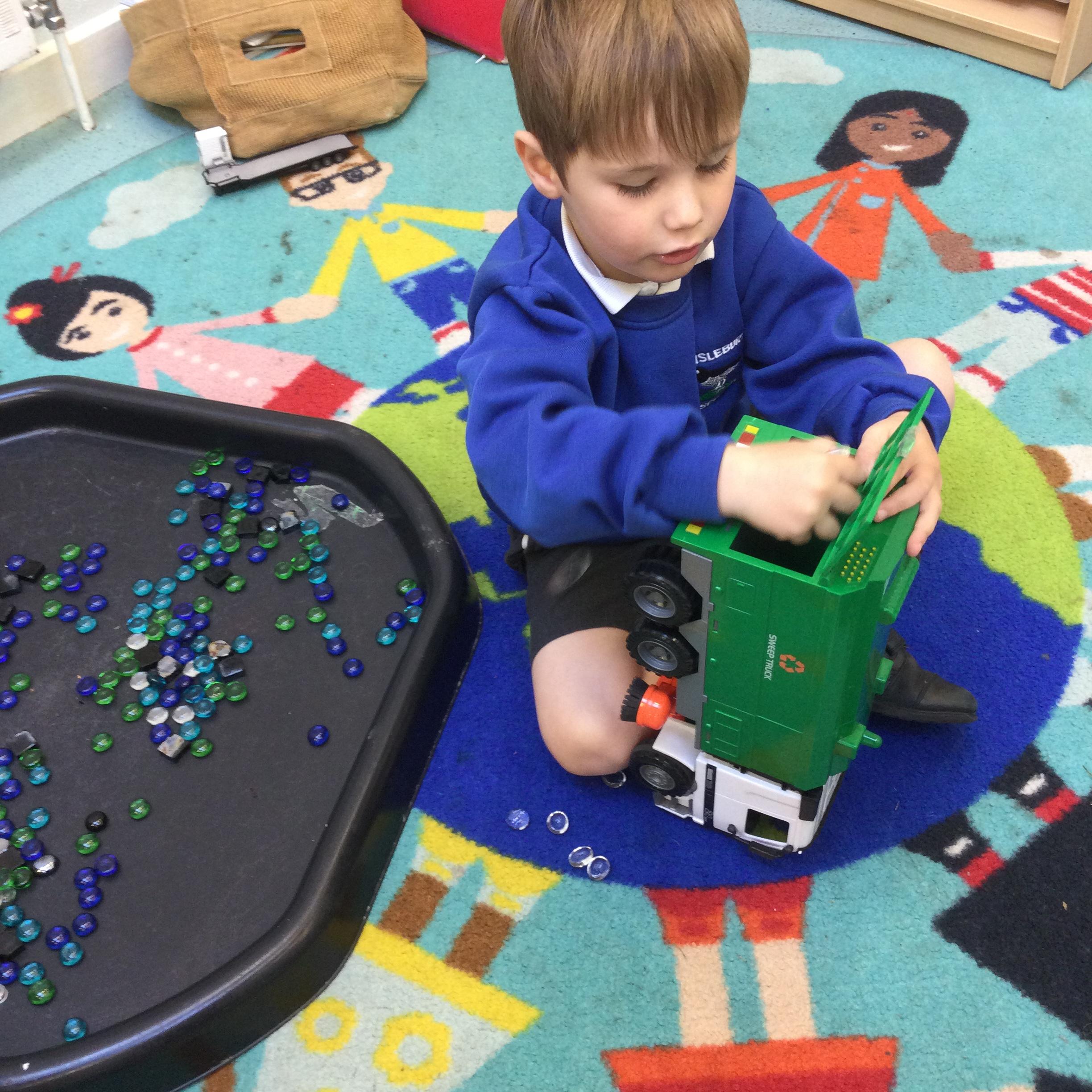 Later in the week, we turned into recycling warriors. We built our own recycling truck, created recycling posters and talked about different materials in science to help us decide what to tidy. We have enjoyed some sorting activities and organising different materials into their categories.