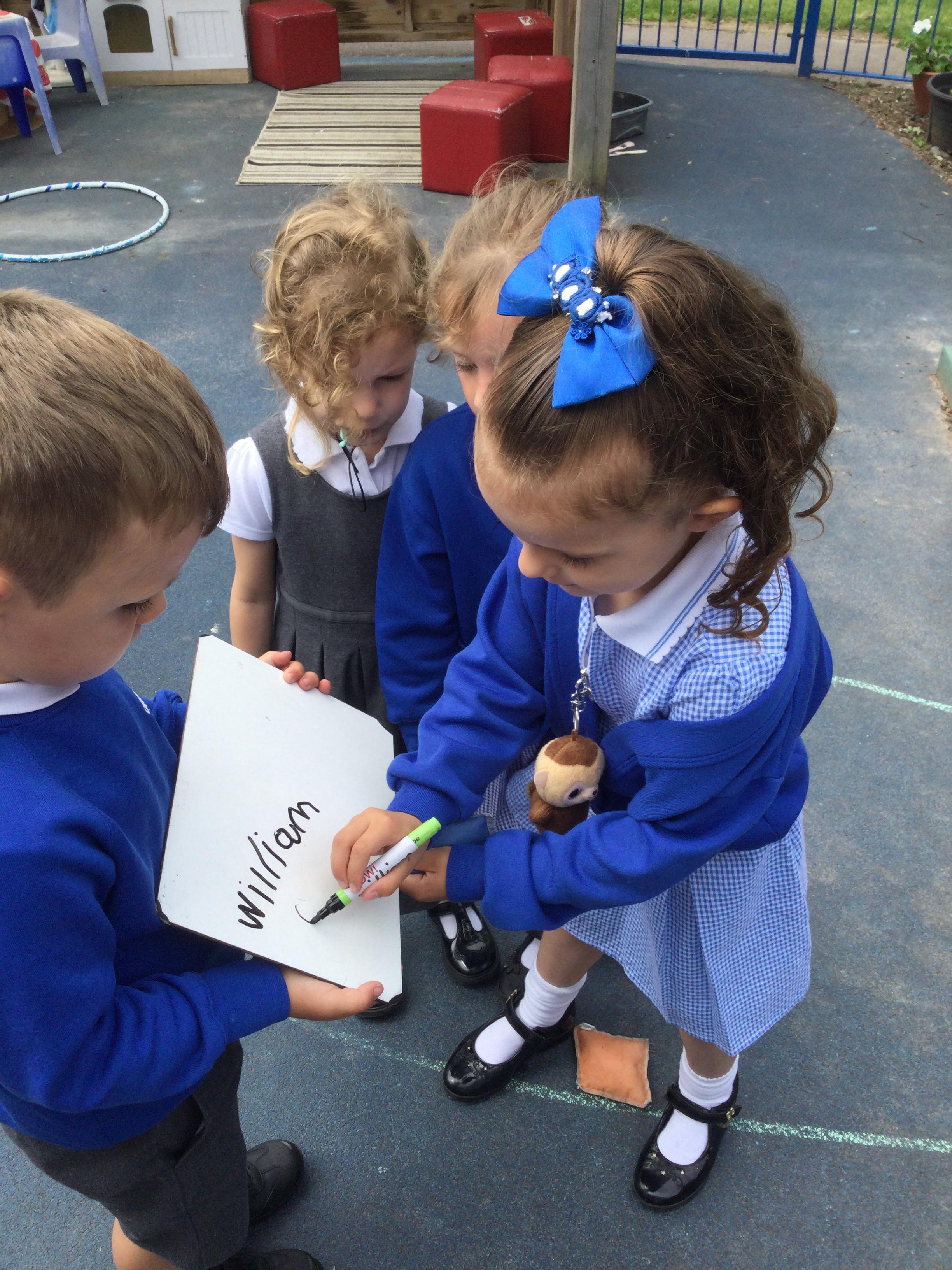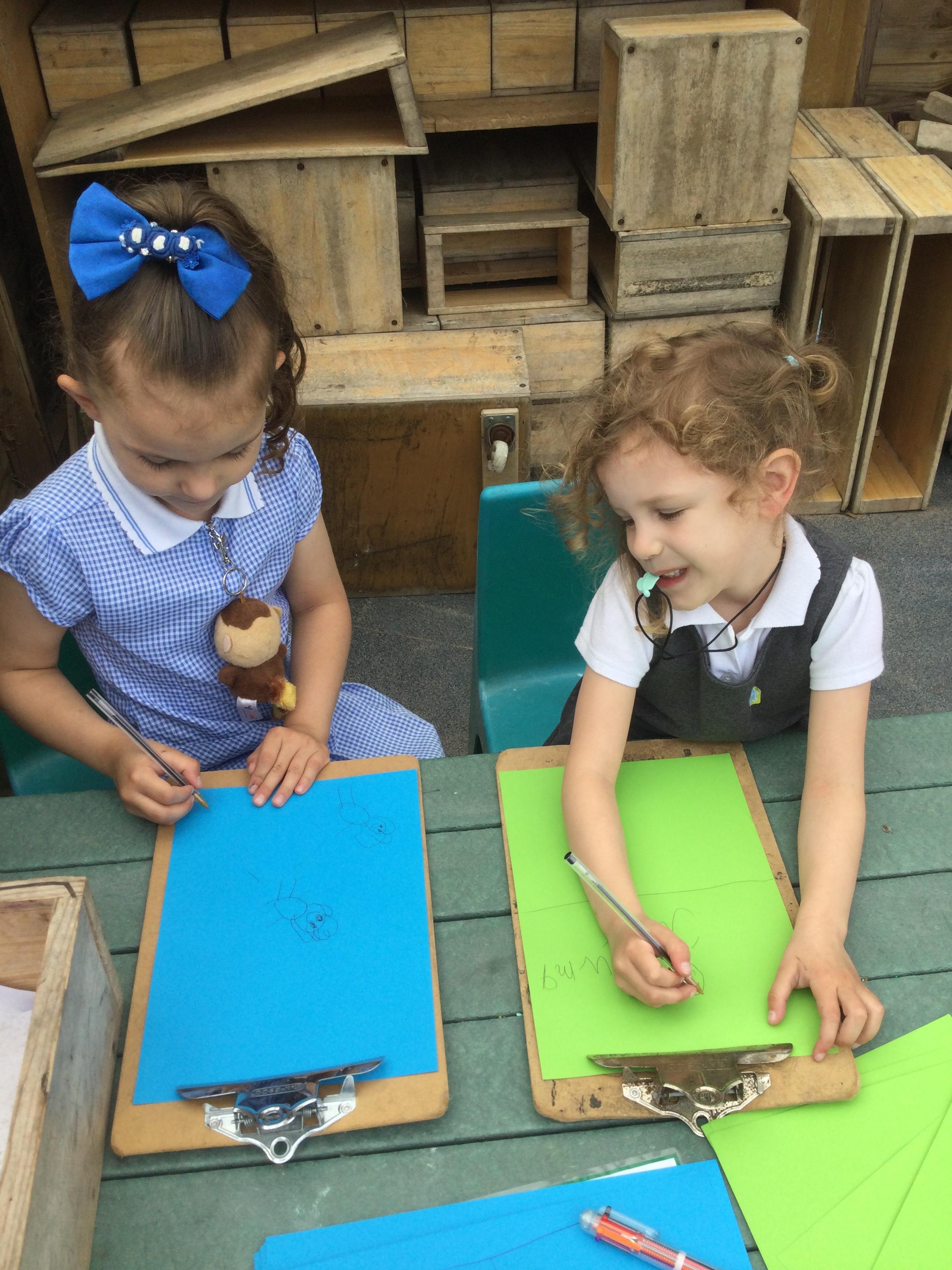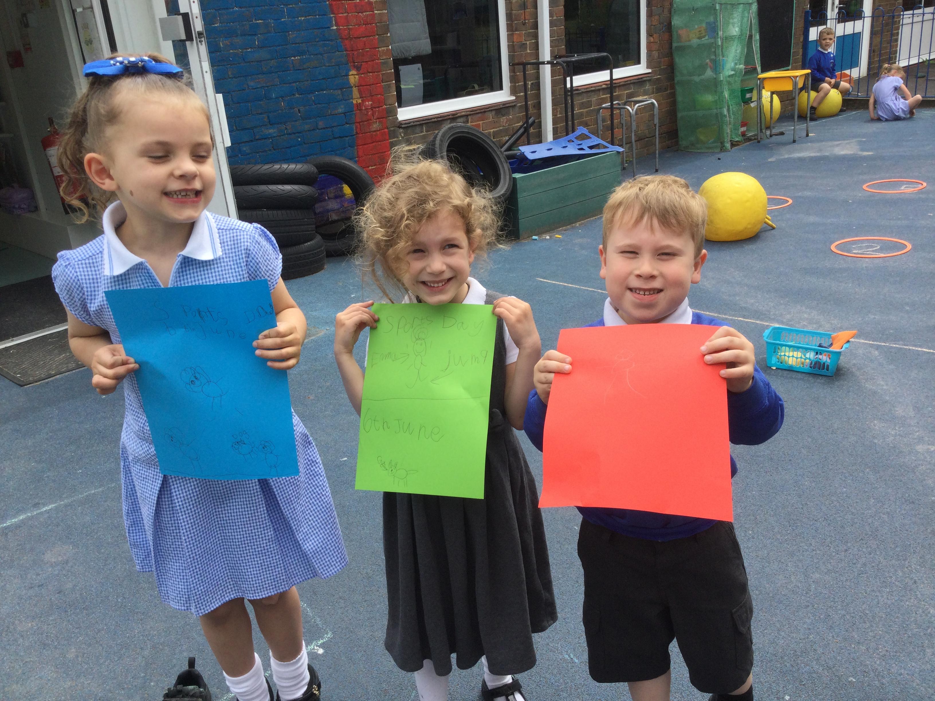 In our outdoor writing area we have been making posters for sports day. We also practiced our races and spoke about the importance of taking part and doing our best.