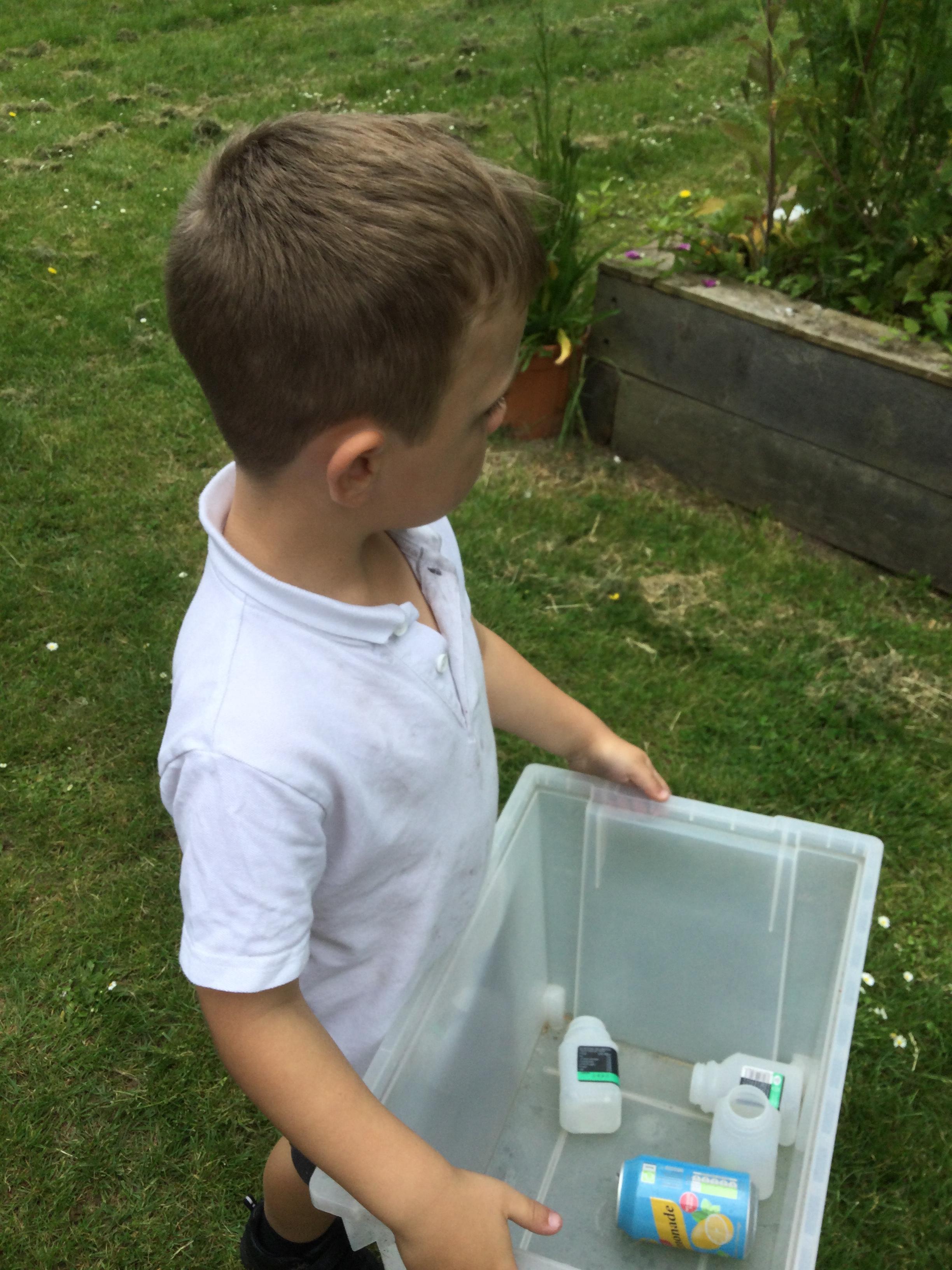 The children collected up some recycling that Mrs Aylward had saved and pretended to litter pick around the school grounds.